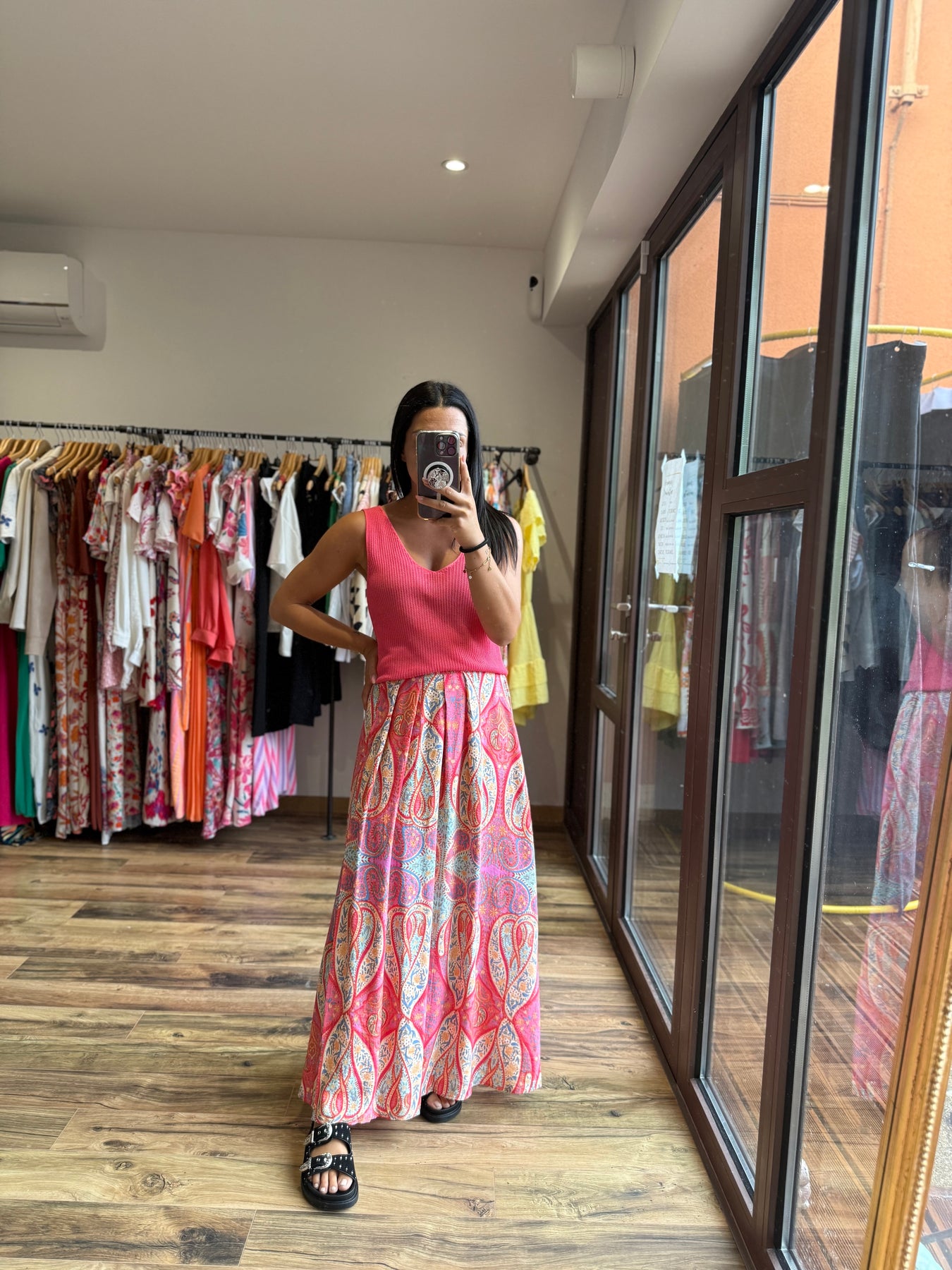 Une jupe Ă lâesprit bohĂšme chic quâon peut porter aussi bien Ă plat quâavec un petit talon compensĂ© âš Elle donne du peps Ă nâimporte quel haut uni, comme ici avec un dĂ©bardeur rose fuchsia ! Facile Ă enfiler, lĂ©gĂšre, fĂ©minine et agrĂ©able sur la peau⊠câest la jupe quâon glisse sans hĂ©siter dans sa valise dâĂ©tĂ© đž