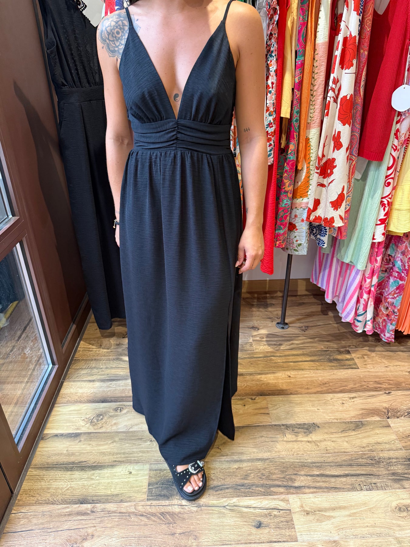 C’est LA petite robe noire d’étĂ© version maxi 🌙 Elle met la silhouette en valeur tout en restant hyper agrĂ©able Ă  porter. Parfaite pour une soirĂ©e d’étĂ©, un dĂźner en terrasse ou mĂȘme un mariage, il suffit de l’accessoiriser avec des bijoux dorĂ©s ou argentĂ©s et une paire de talons. Chic sans effort ✹