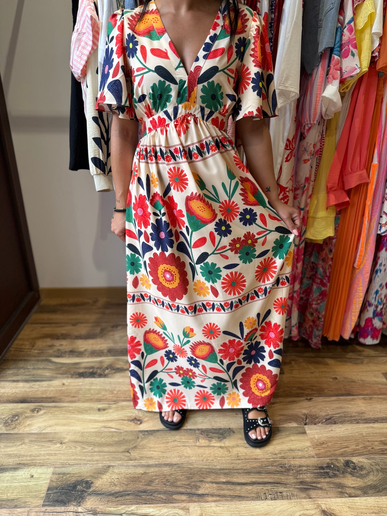 🌸 Robe longue “Meira” – Explosion florale vitaminée !