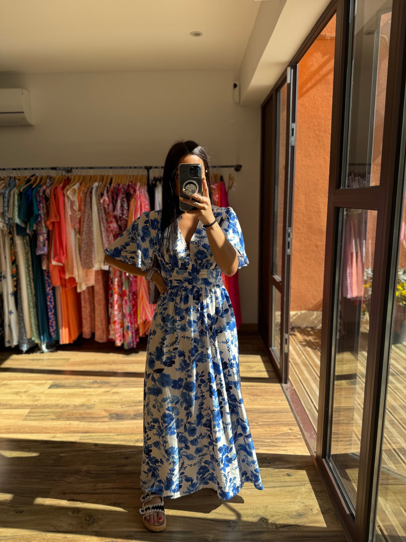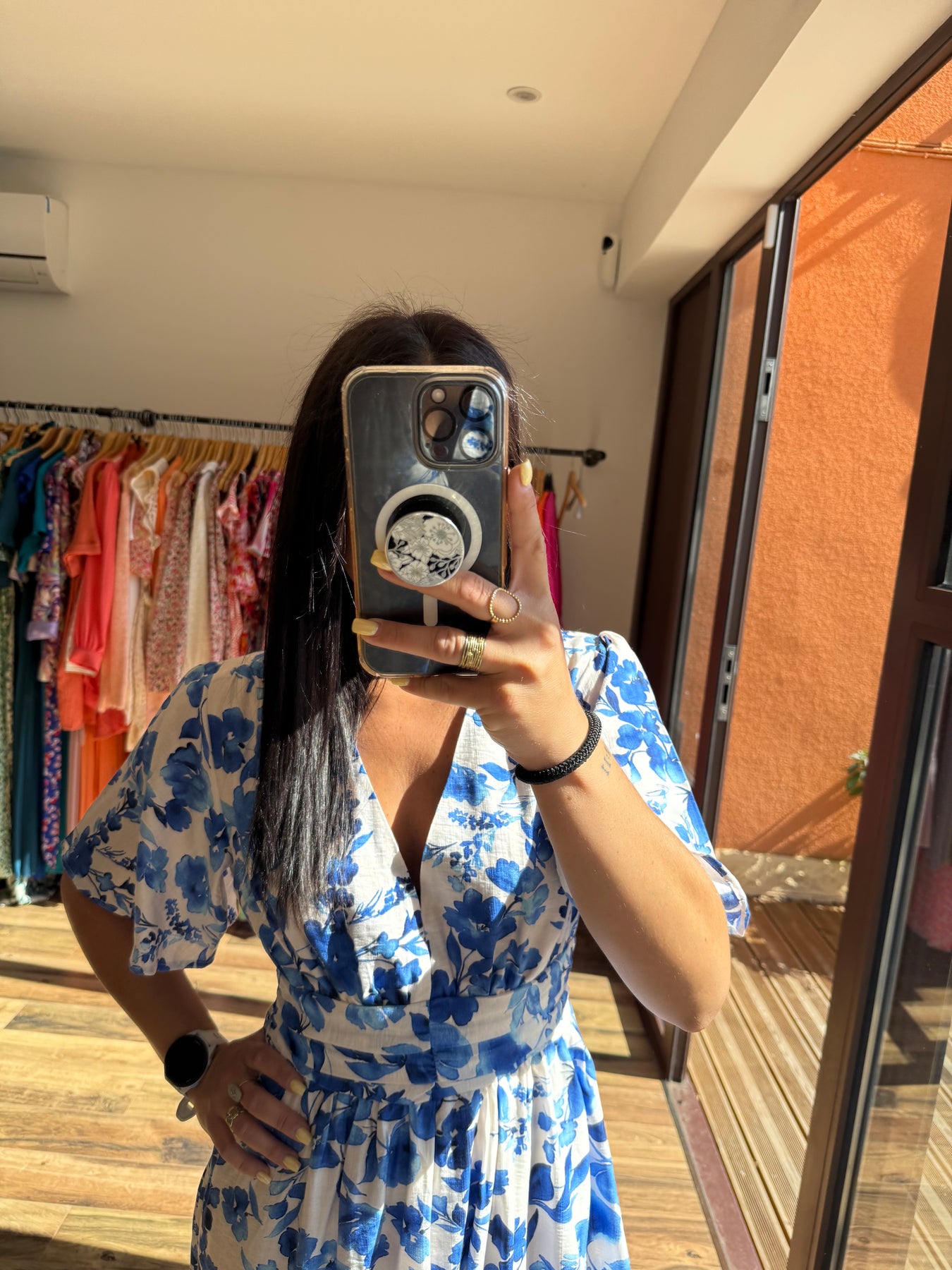 Cette robe Aloïse est un vrai coup de cœur pour l’été : féminine, légère et délicatement colorée. Son imprimé bleu lumineux sur fond écru apporte fraîcheur et élégance à votre silhouette. Parfaite pour une journée ensoleillée, un dîner en terrasse ou même une cérémonie d’été. Associez-la à des sandales plates ou à talons pour un look raffiné et confortable. 🌸💙