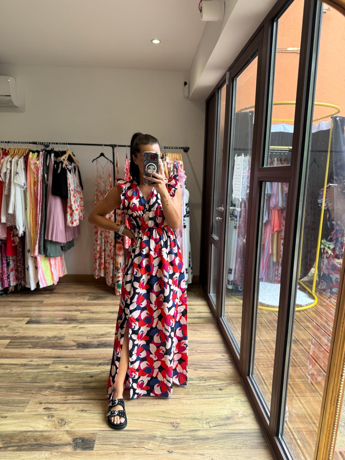 • Imprimé floral rouge, fuchsia, marine et blanc