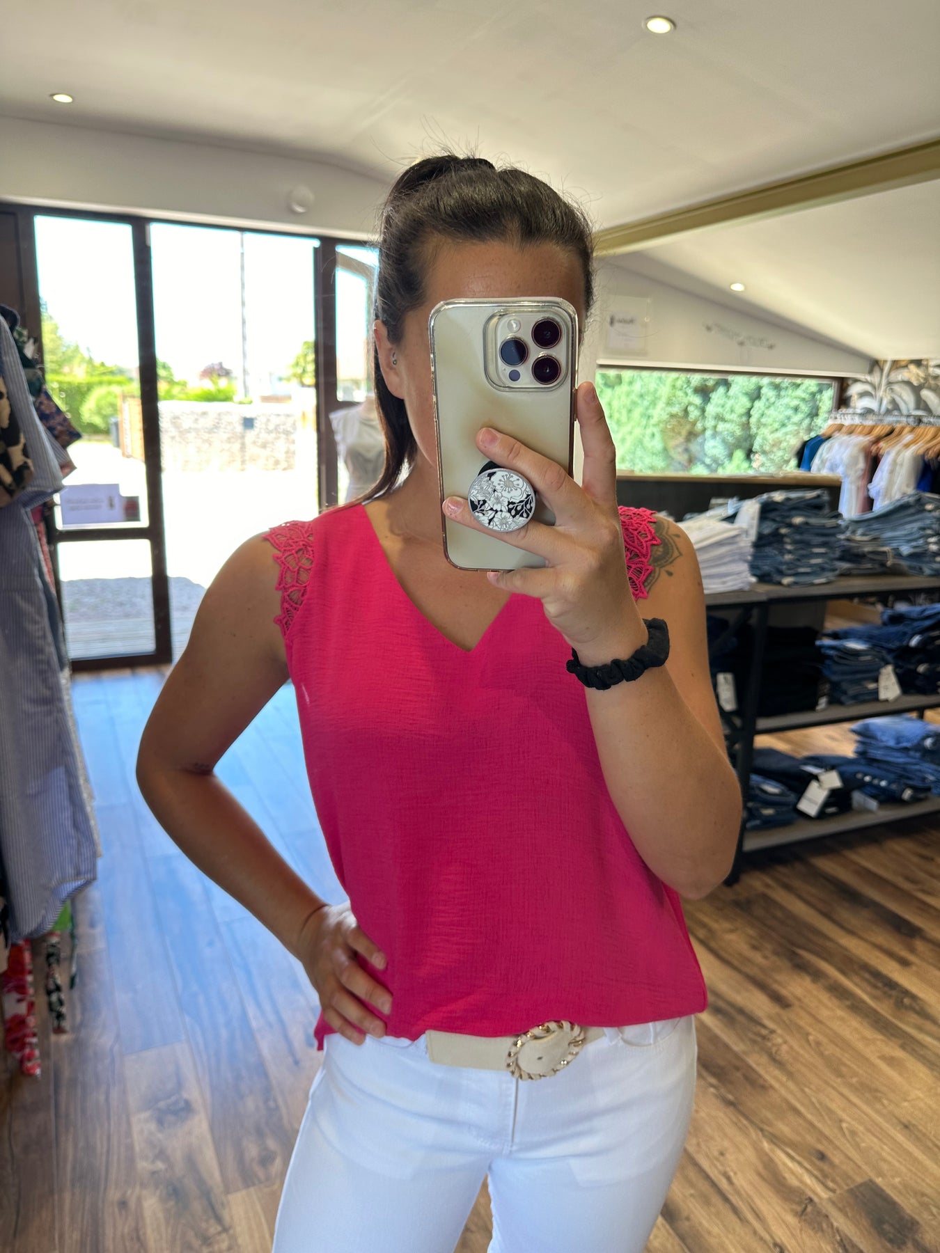 Alicia mesure 1m57 et met du 36 elle porte la blouse avec le jean flair blanc