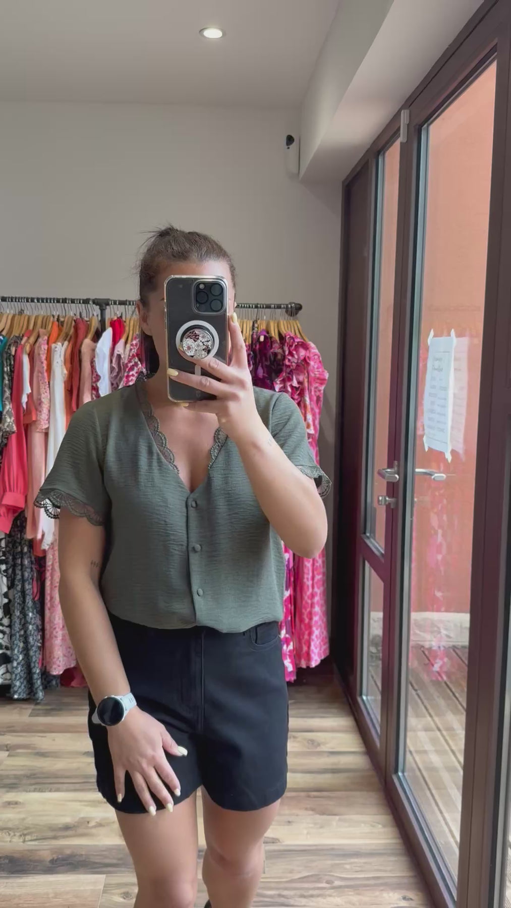 ✨ La chemise Sonia curvy est idéale pour allier confort et raffinement. Son détail dentelle ajoute une touche romantique à vos looks du quotidien. Portez-la rentrée dans un short en jean pour un style casual chic, ou avec un pantalon fluide pour une allure plus habillée. Une pièce passe-partout qui s’adapte à toutes vos envies mode ! 🌿✨