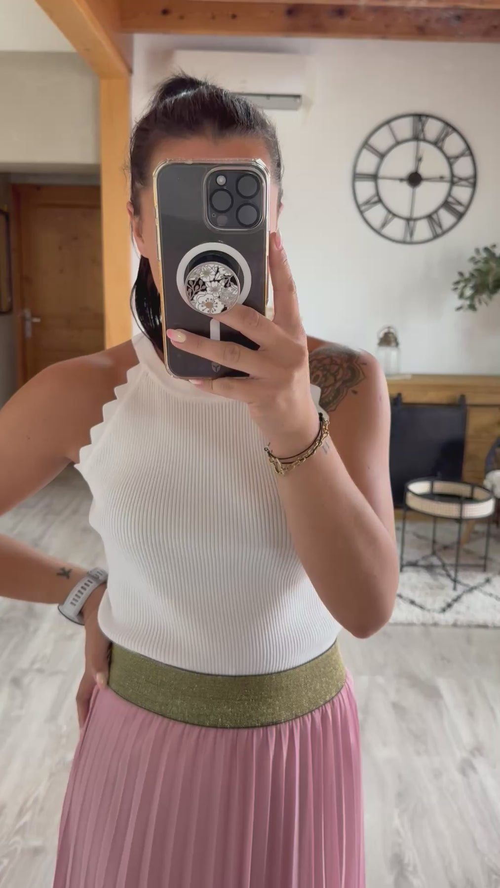 Avec sa coupe plissée et sa belle couleur rose poudré, Gambi fait pétiller vos tenues estivales ! On aime son confort grâce à la taille élastique, son tombé élégant et son style facile à associer. Parfaite avec un débardeur ajusté ou un tee-shirt rentré, pour une silhouette moderne et féminine.