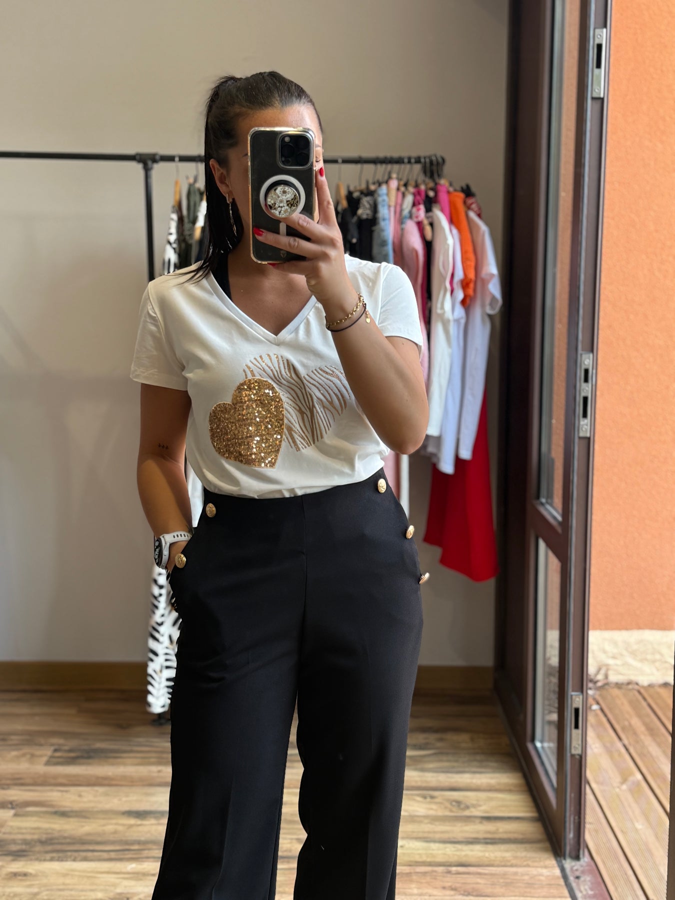 Alicia mesure 1m57 et met du 36 elle porte le teeshirt avec le pantalon gullia
