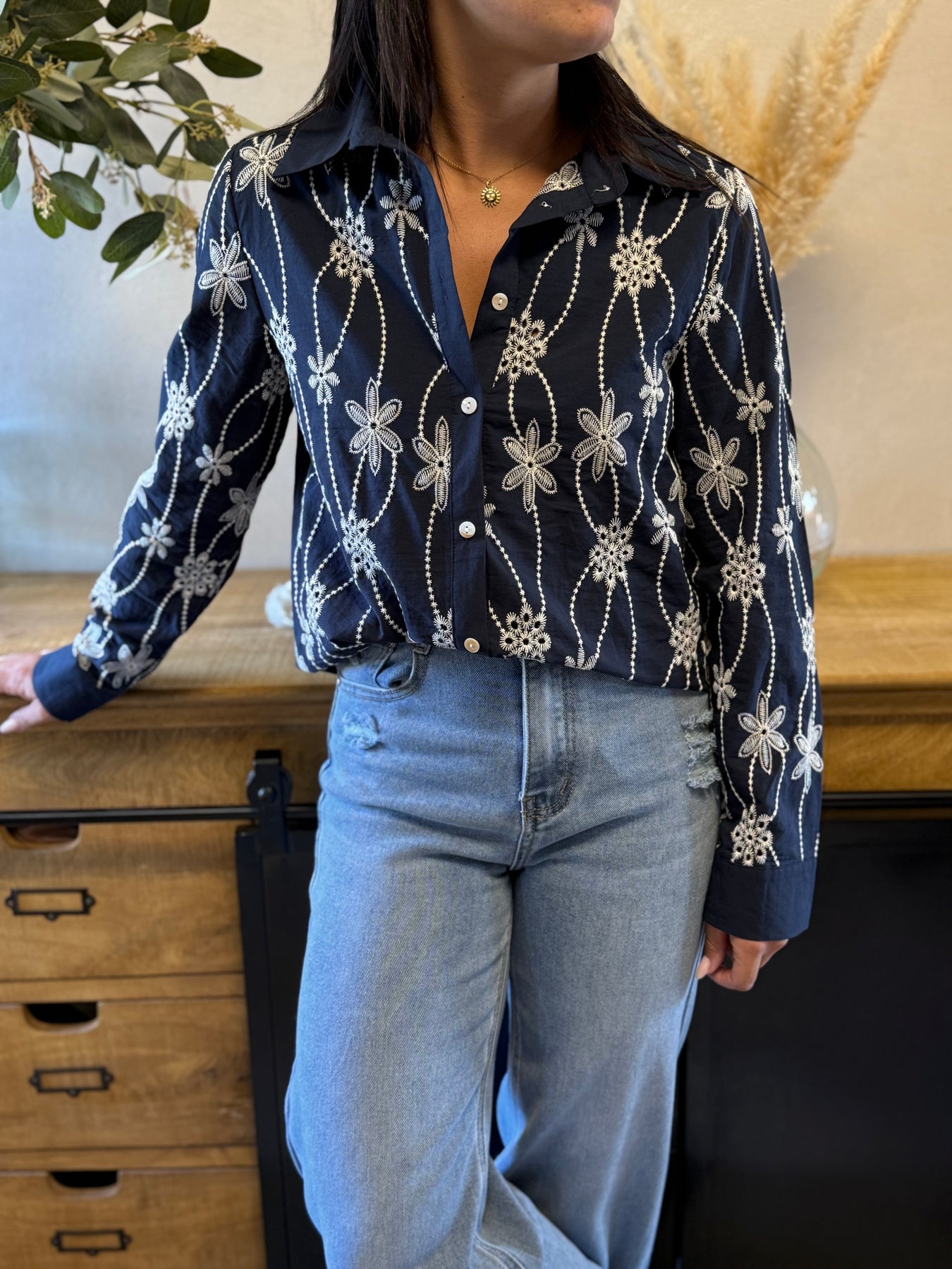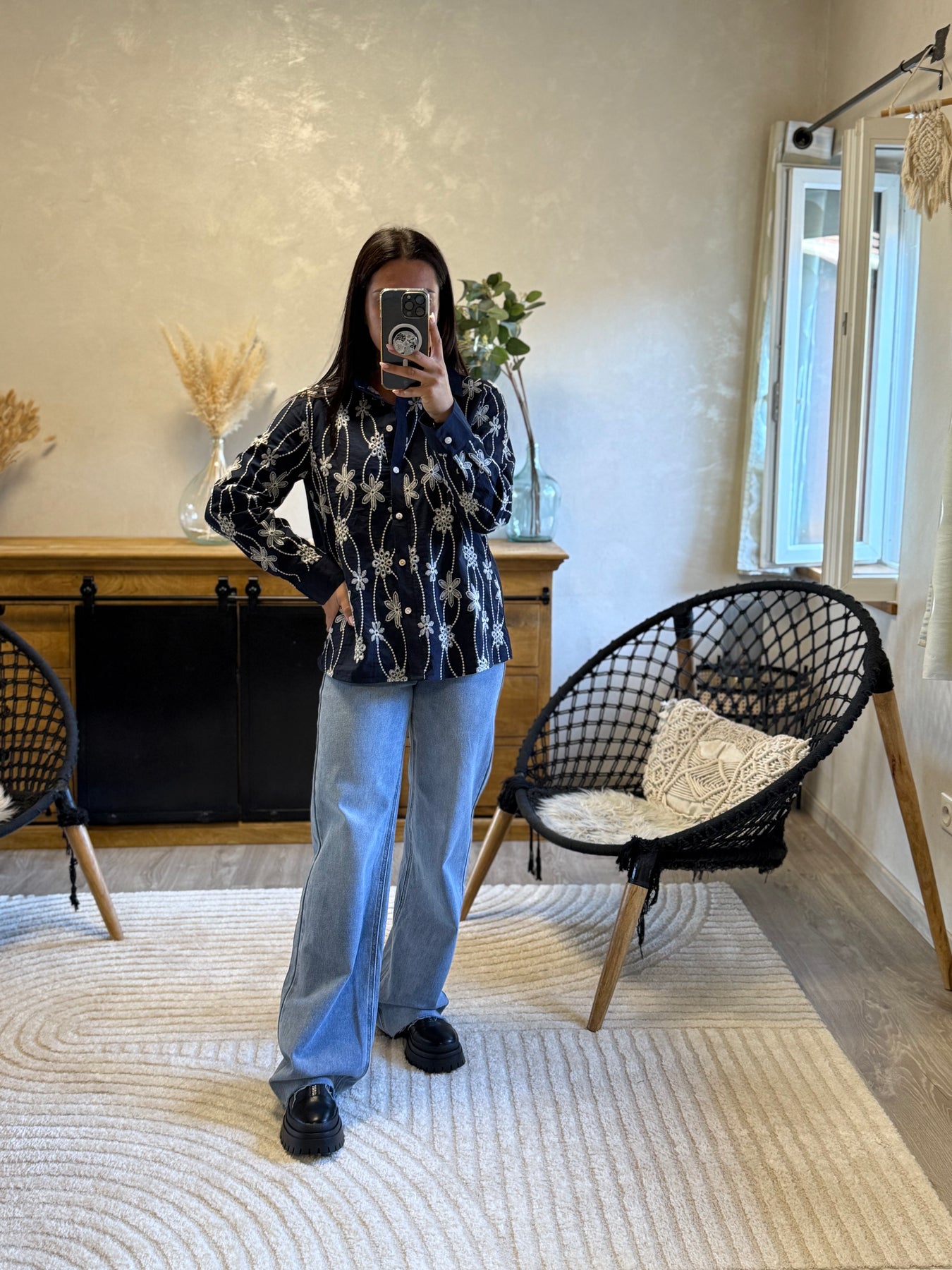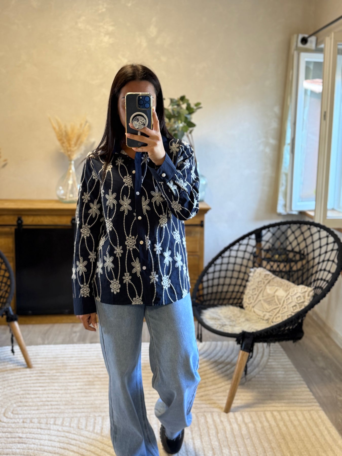 La chemise Tatiana associe la modernité d’un tissu léger au charme délicat de ses broderies florales. Elle se porte aussi bien rentrée dans un jean pour un look chic-décontracté (comme ici), qu’ouverte sur un débardeur pour une allure plus casual. Une pièce raffinée et facile à porter en toutes saisons 🌿.