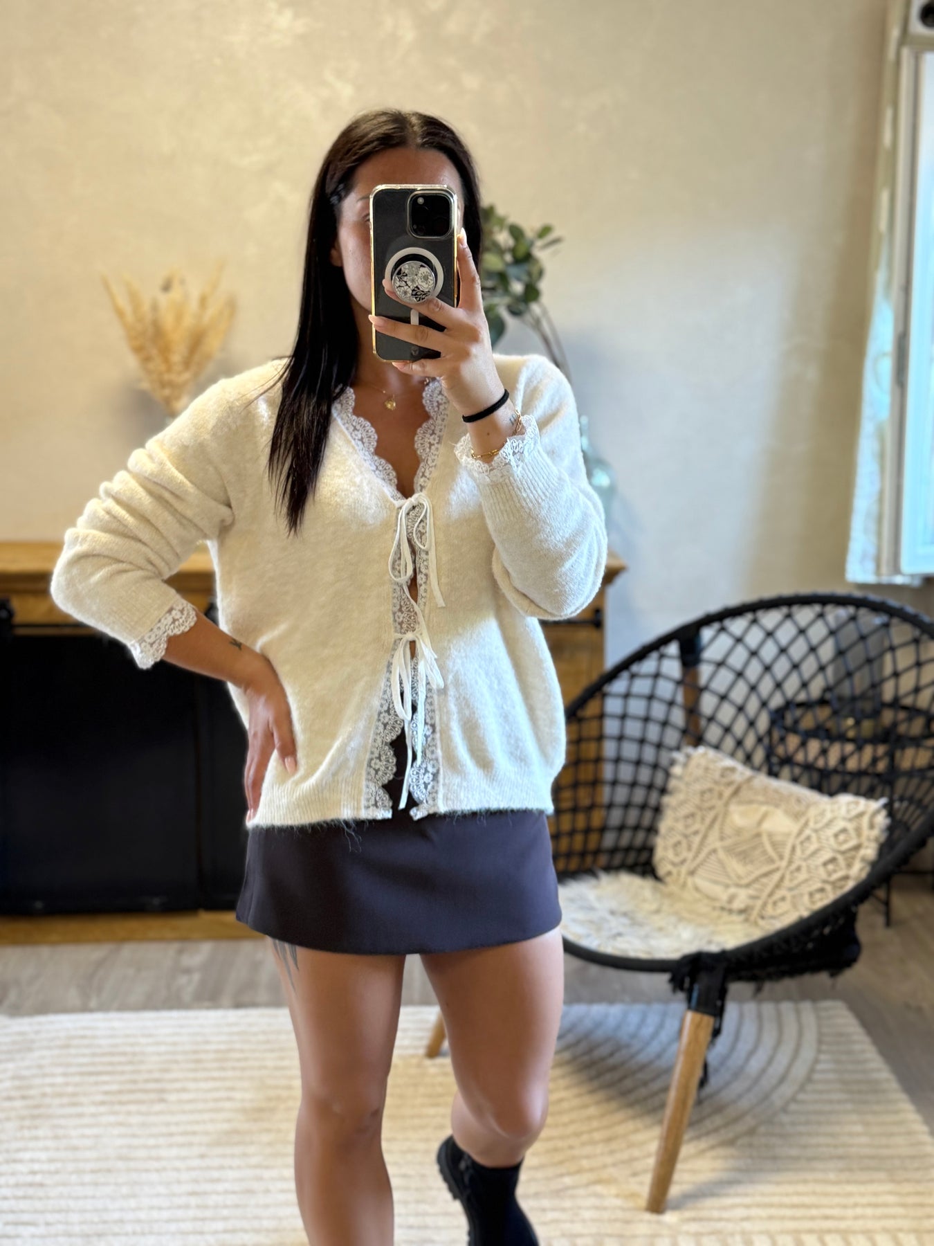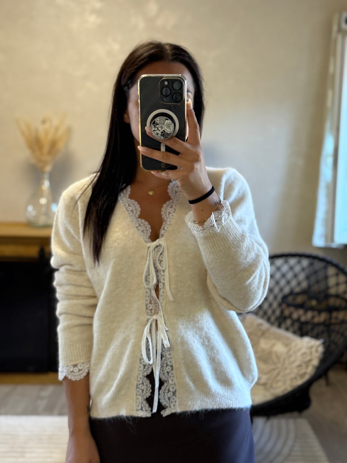 Le pull Gino allie confort et féminité ✨. On craque pour ses finitions en dentelle et ses jolis nœuds qui lui donnent une touche romantique 🤍. Parfait avec une jupe pour un look habillé, ou avec un jean pour un style cocooning chic.