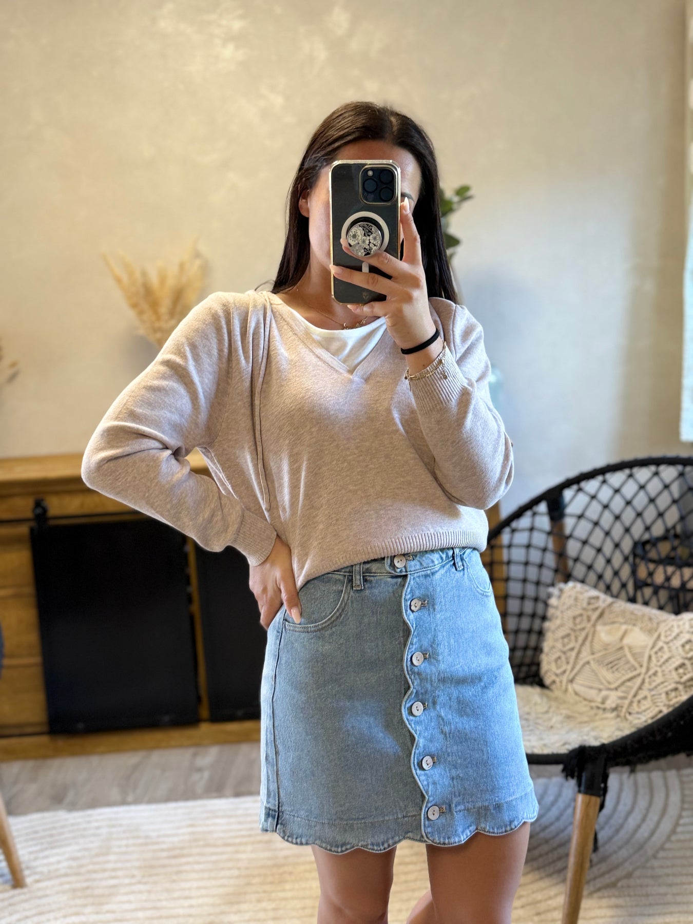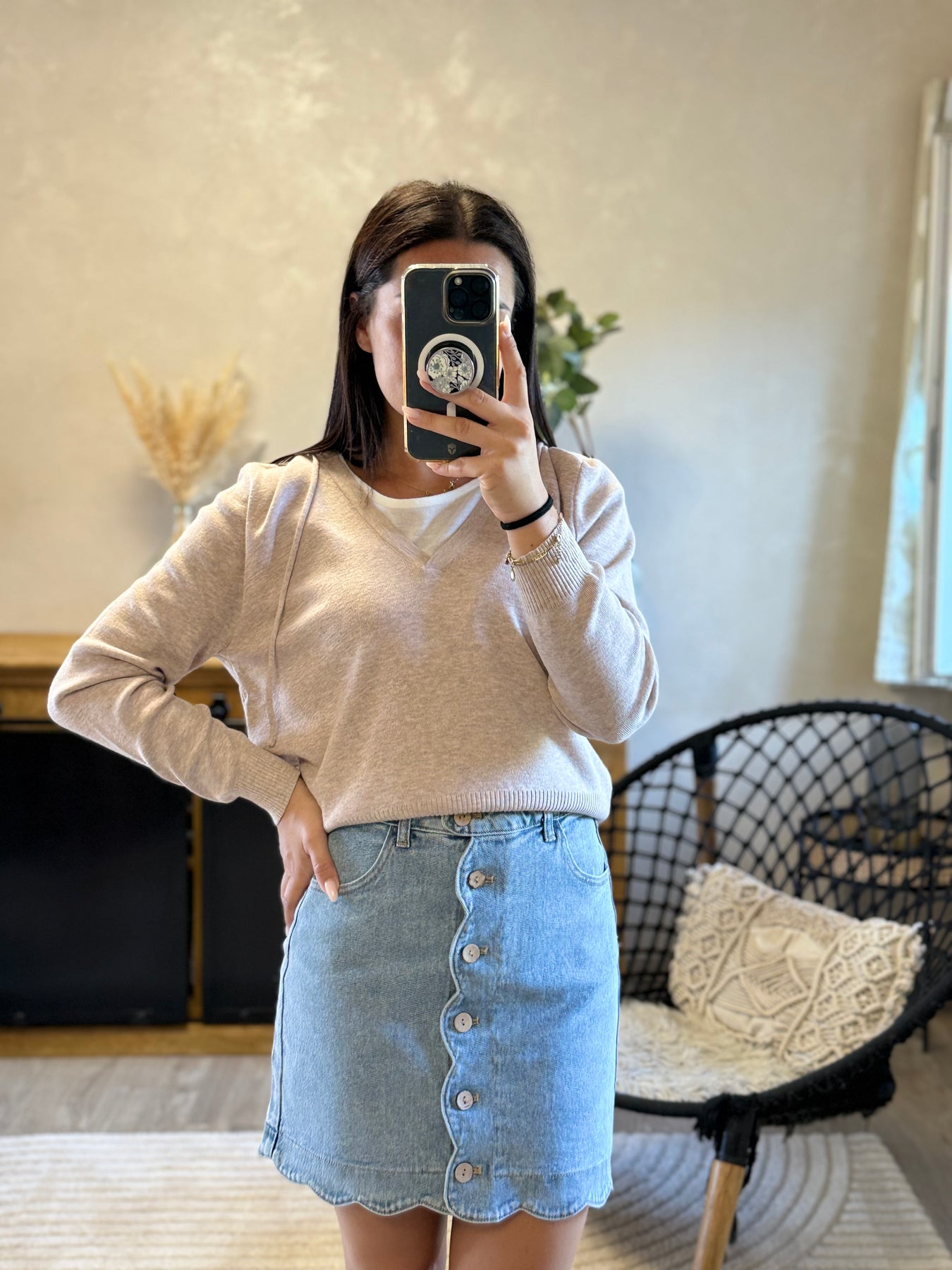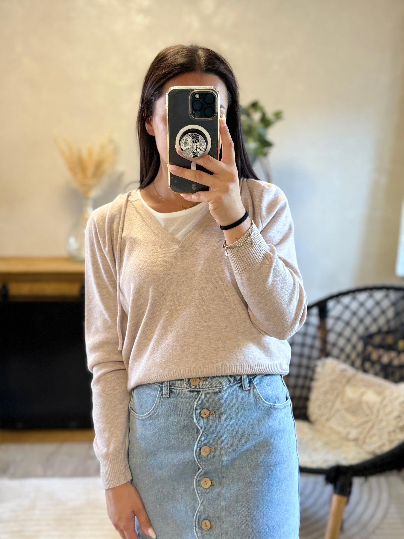 Le pull Janis est le parfait compromis entre élégance et confort ✨. Avec son style 2 en 1, il donne l’illusion d’une chemise glissée sous un pull col V, sans les contraintes des superpositions. Idéal avec un jean pour un look casual chic ou avec un pantalon habillé pour le bureau. Une pièce pratique, féminine et facile à porter en toute saison 💕.