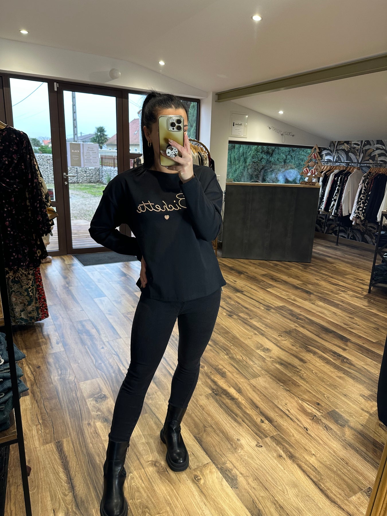 Alicia mesure 1m57 et met du 36 elle porte le haut avec le jean auburn