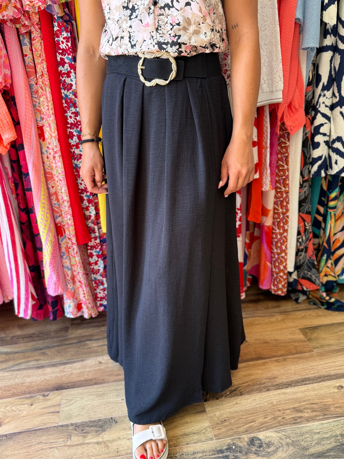 🖤 Jupe longue Gia – Élégance ceinturée et fluide