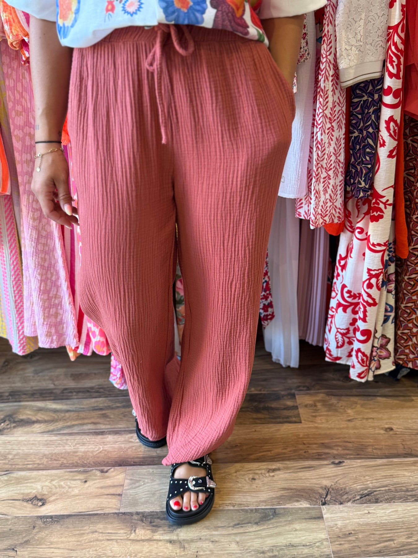 Pantalon gaze de coton terracotta