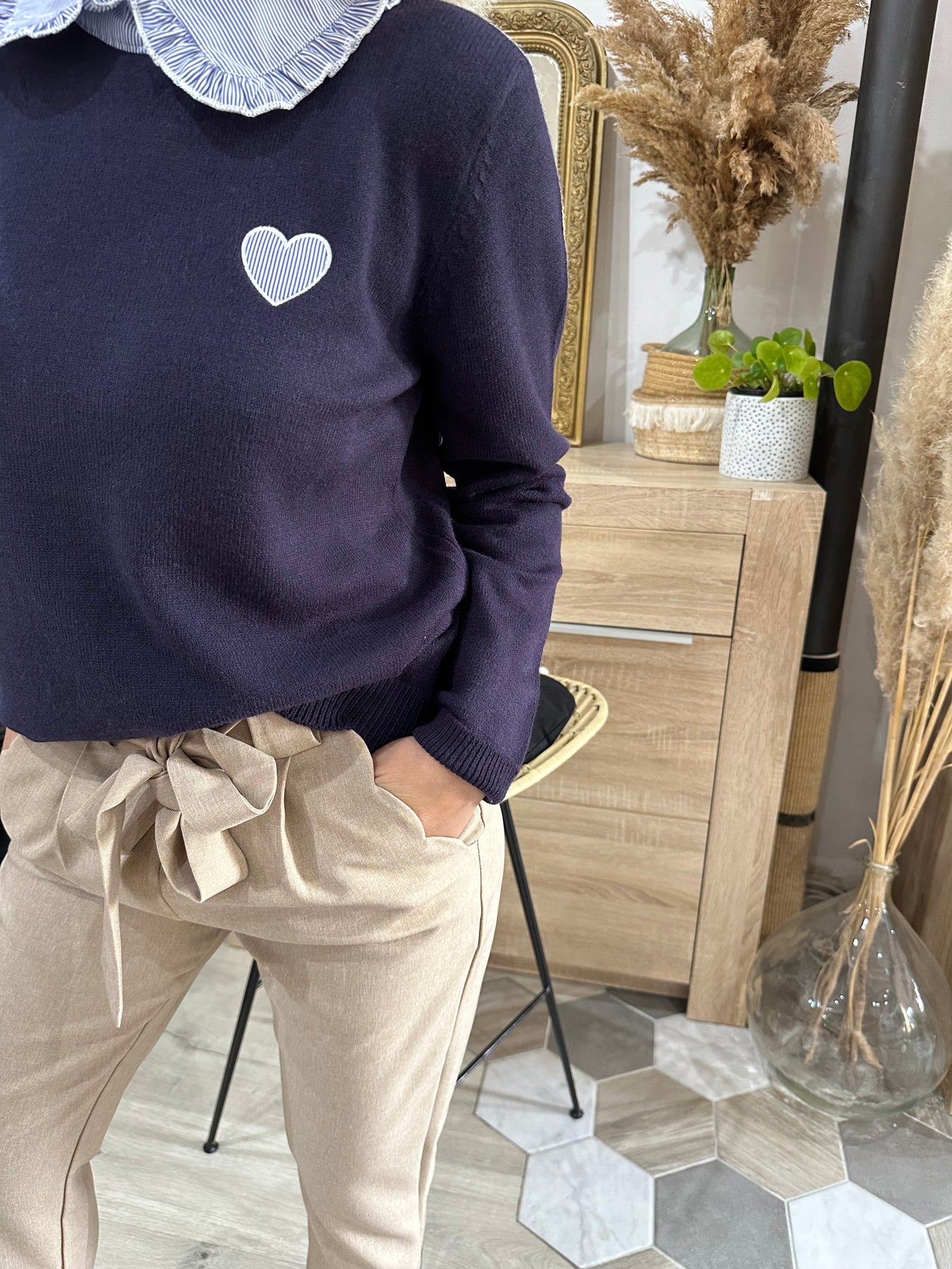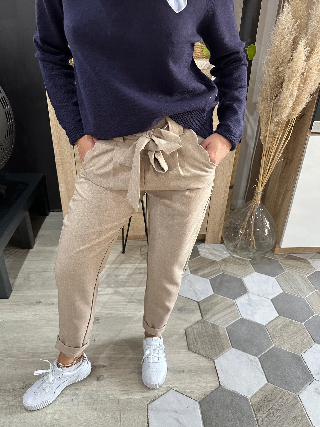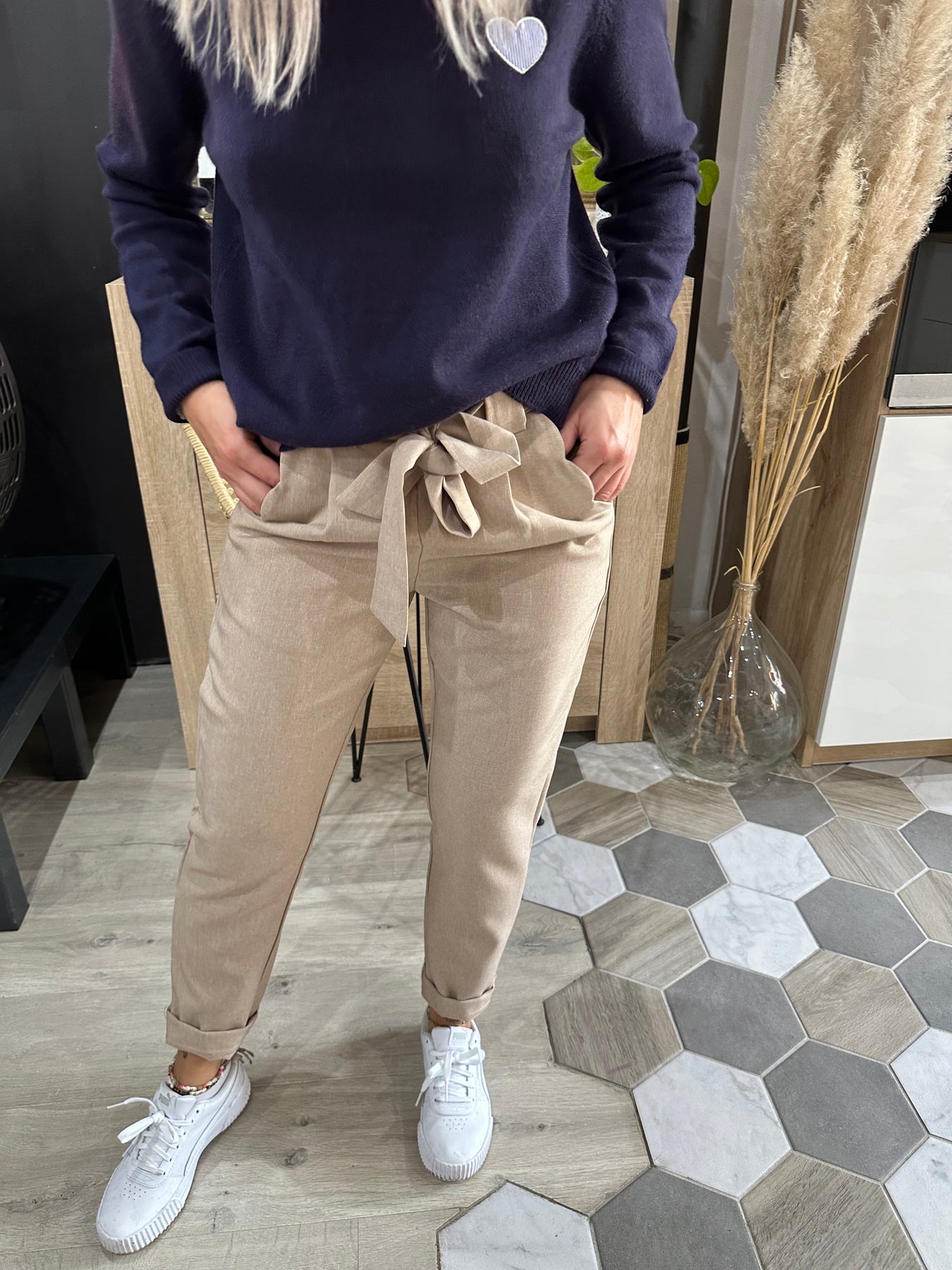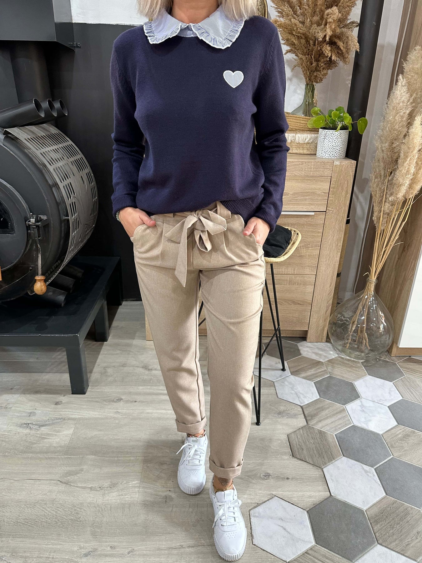 Elise mesure 1m62 et met du 36 elle porte le pantalon avec le pull Lola