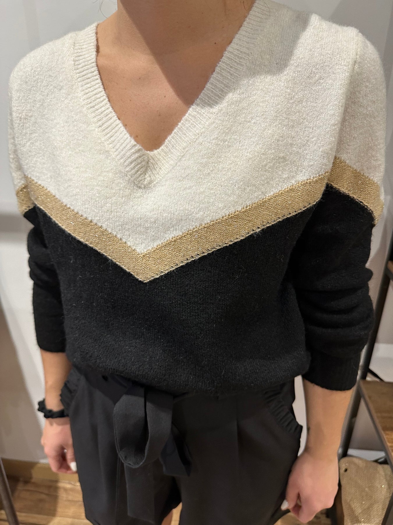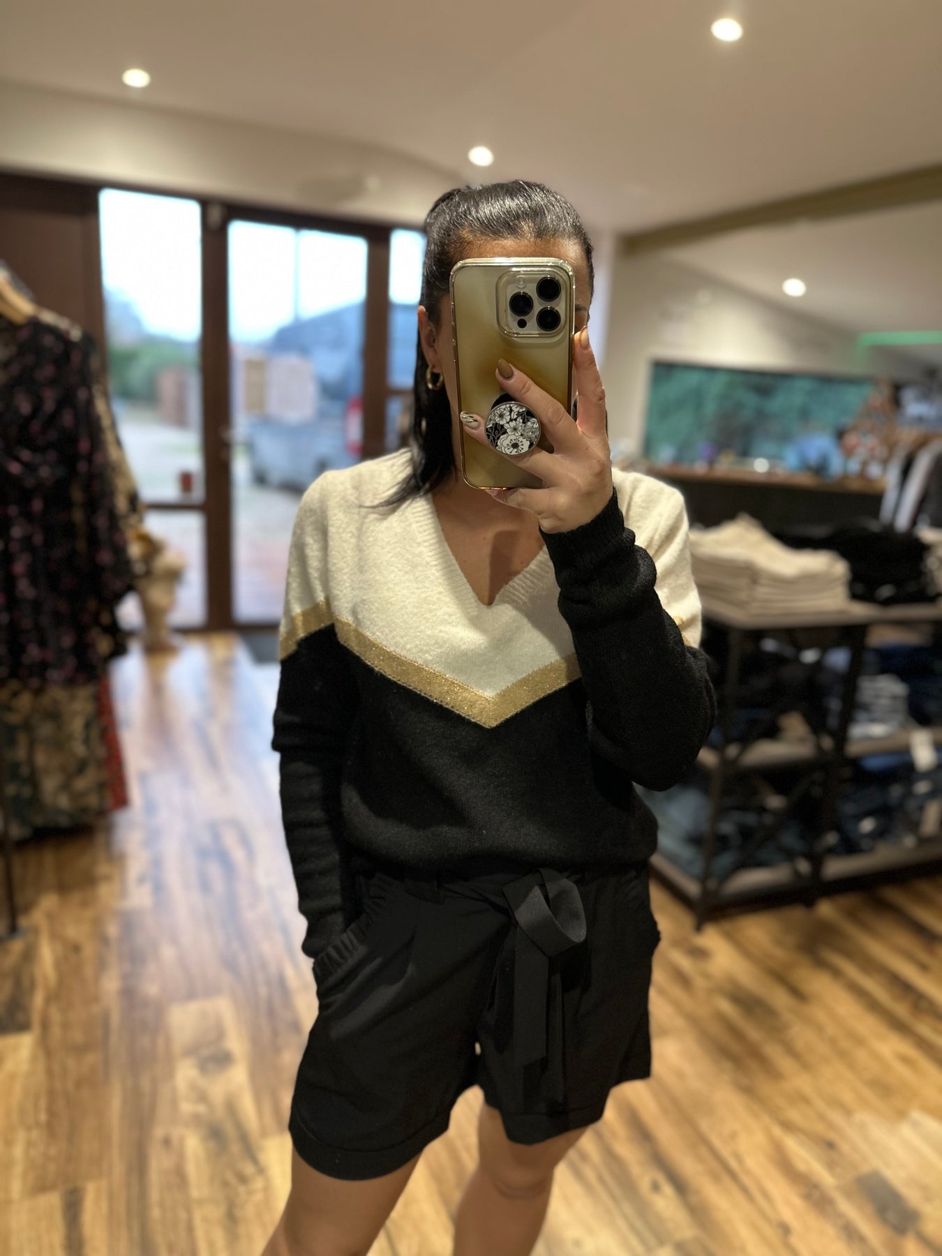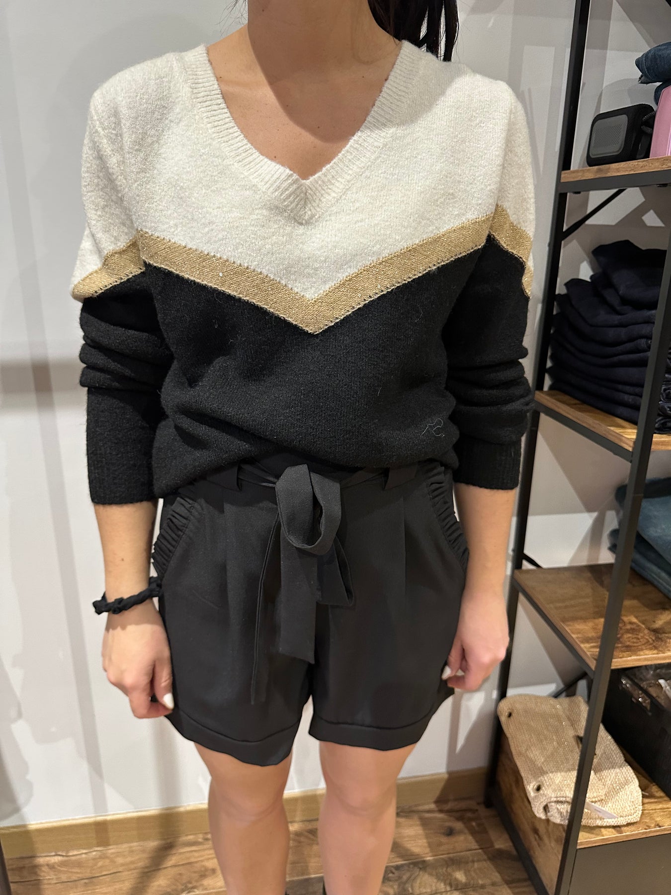 Alicia mesure 1m57 et met du 36 elle porte le pull avec le short Yalle noir