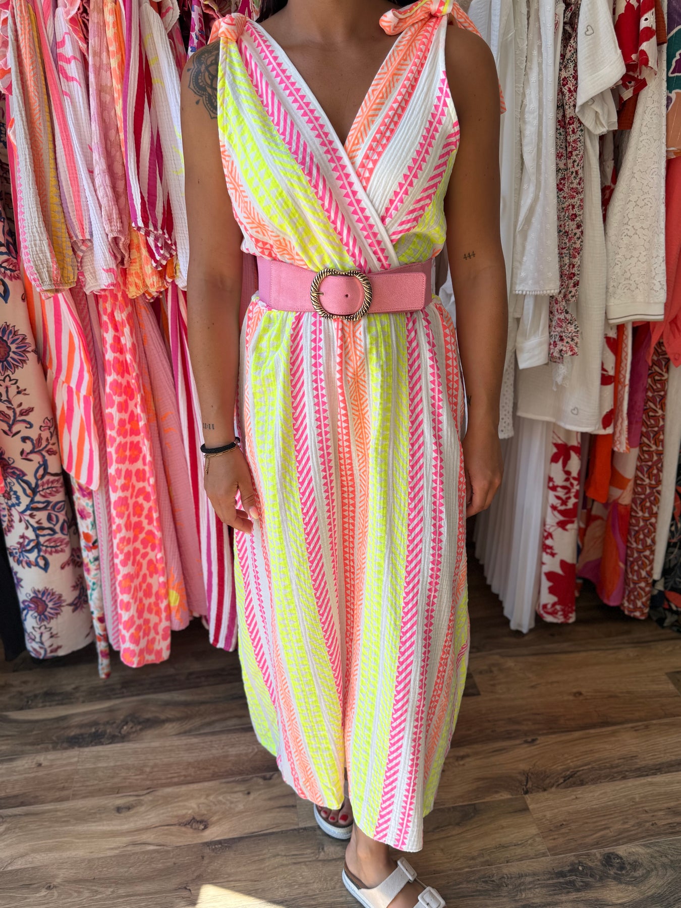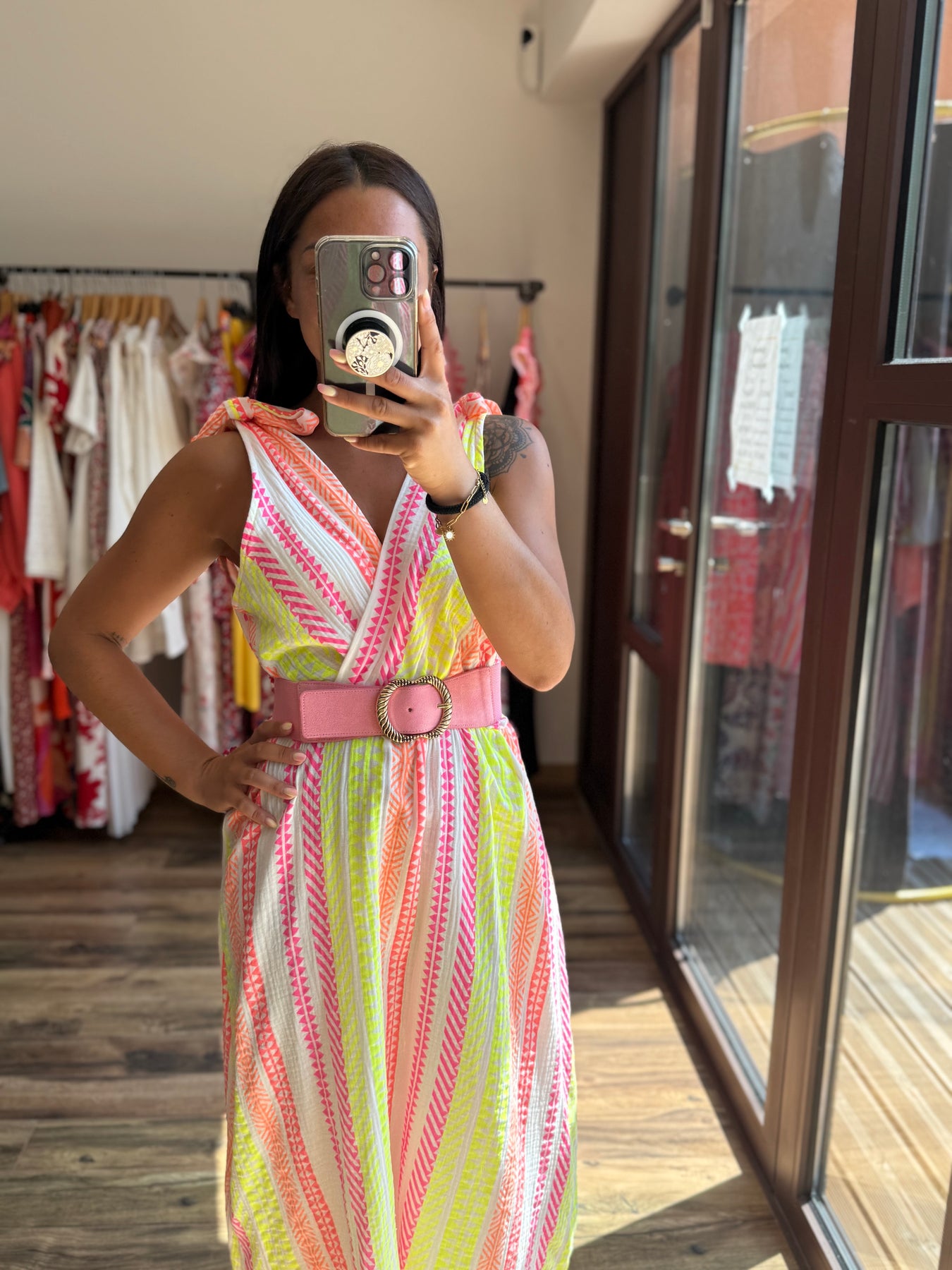 Un vrai concentré de bonne humeur ! La robe “Laure” est un bijou de confort et de style, avec sa matière ultra légère et ses couleurs acidulées parfaites pour l’été. Facile à ajuster grâce à ses nœuds aux épaules, elle mettra du pep’s dans vos journées ensoleillées. On l’adore avec une ceinture contrastante et des sandales plates pour un look casual chic !