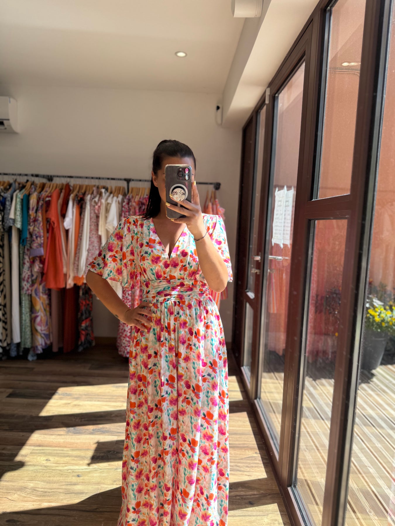 La robe Ninah est un vrai bijou estival : son imprimé floral éclatant et sa coupe flatteuse apportent élégance et fraîcheur à vos journées. Portez-la avec des sandales plates pour une allure bohème décontractée, ou avec des talons pour un look plus habillé en soirée. Une pièce lumineuse qui attire tous les regards ! 🌸✨