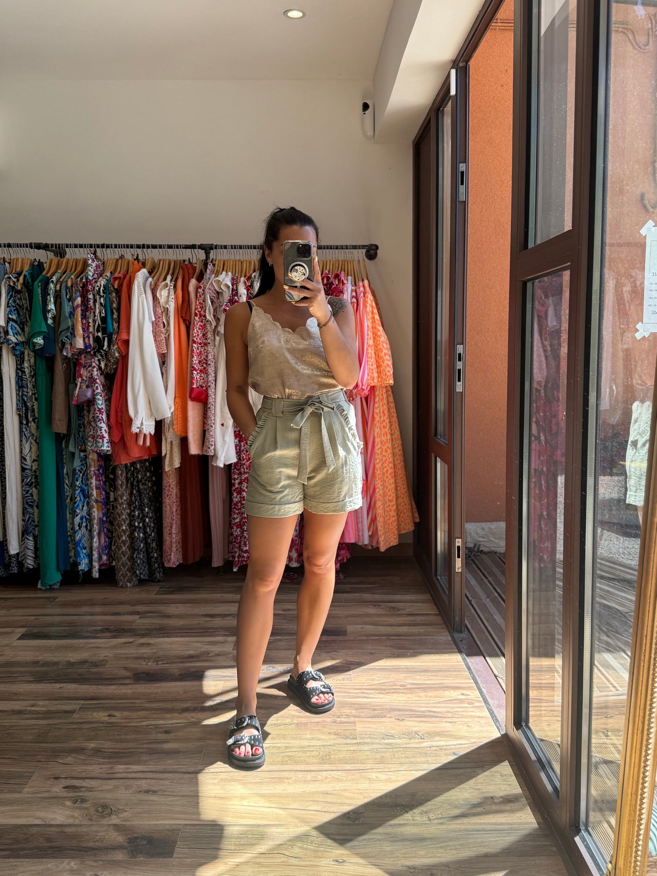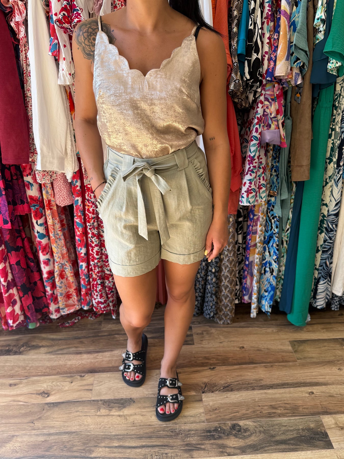 Short Jelena – Coupe paperbag & teinte kaki tendance