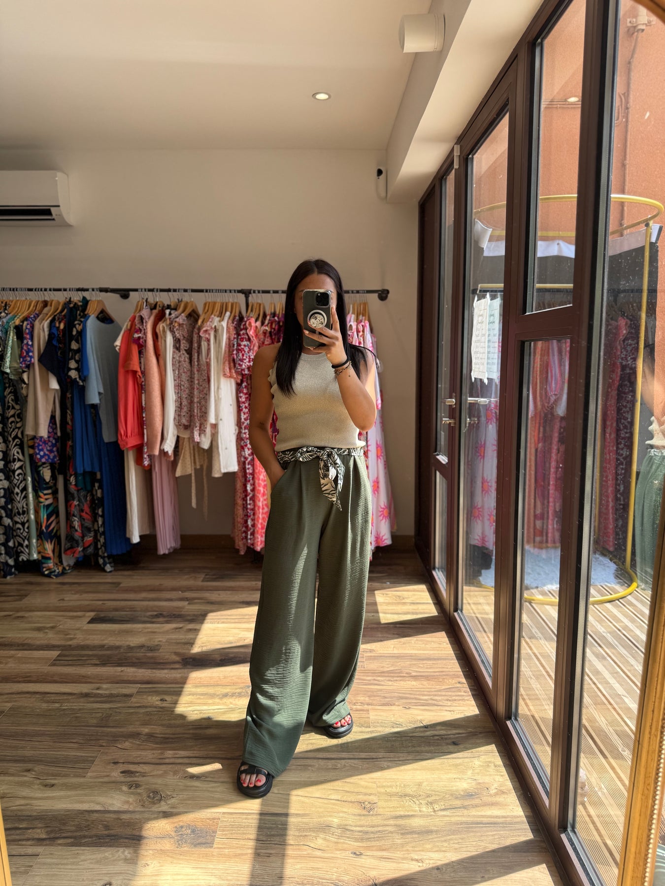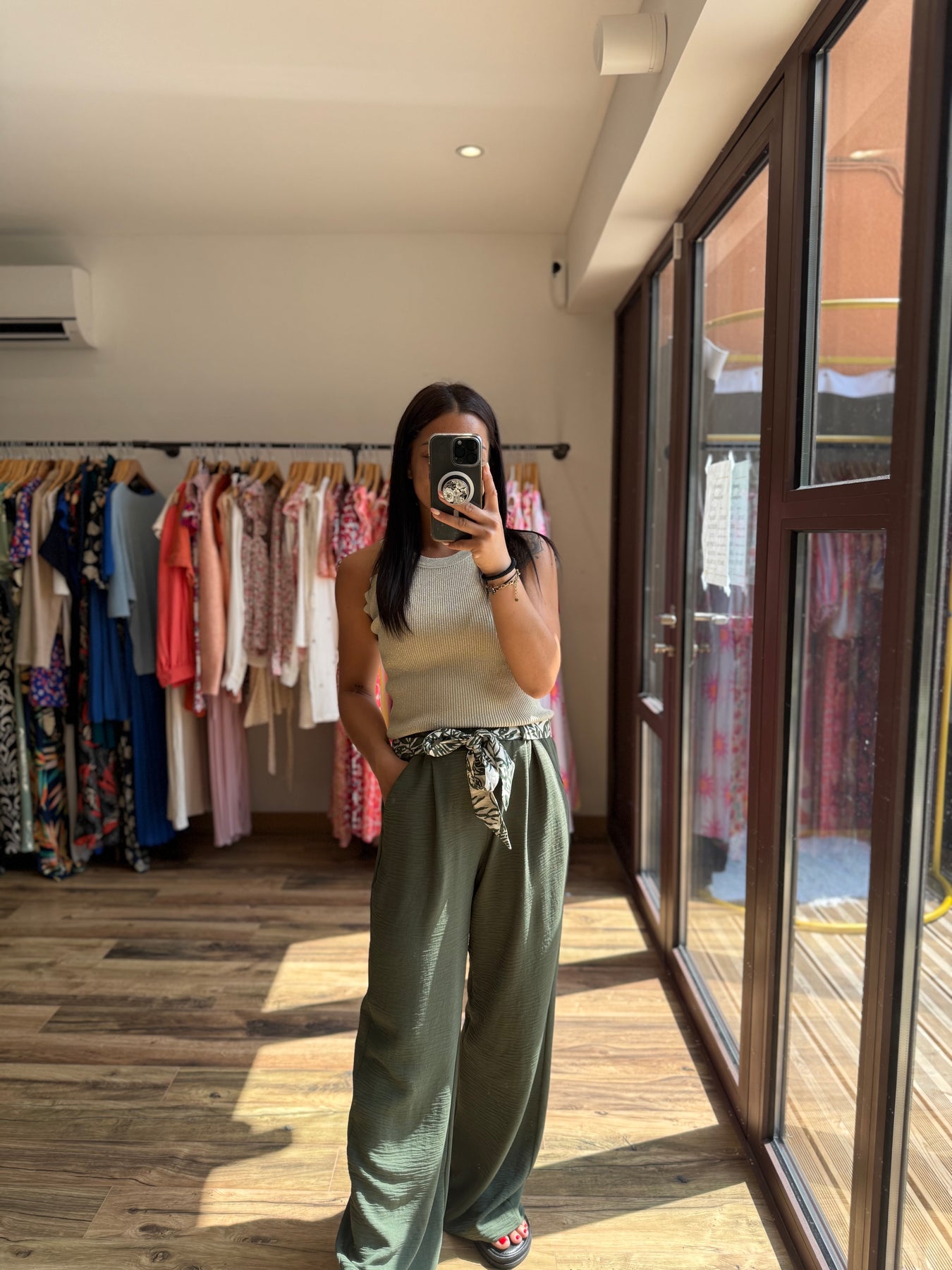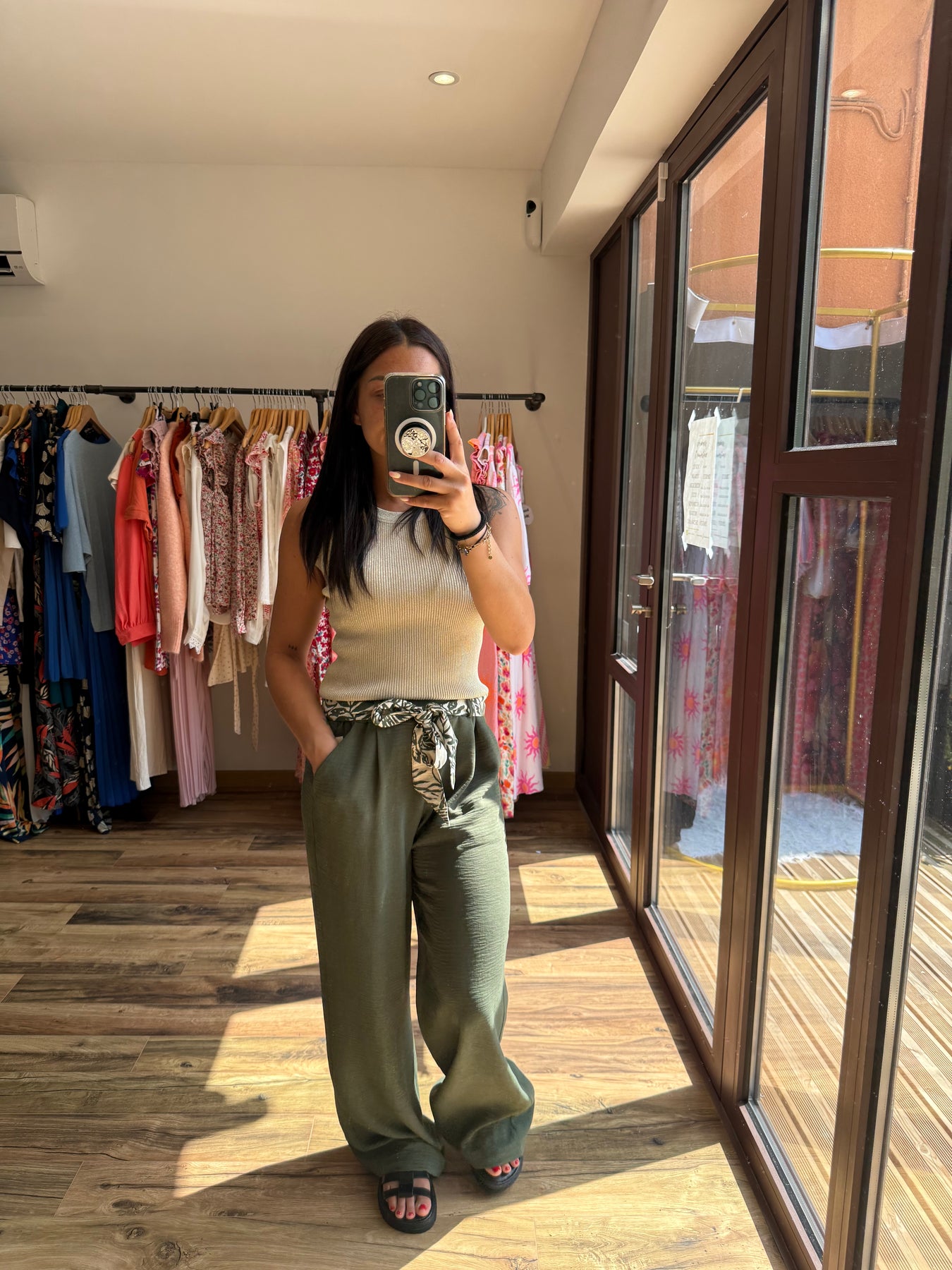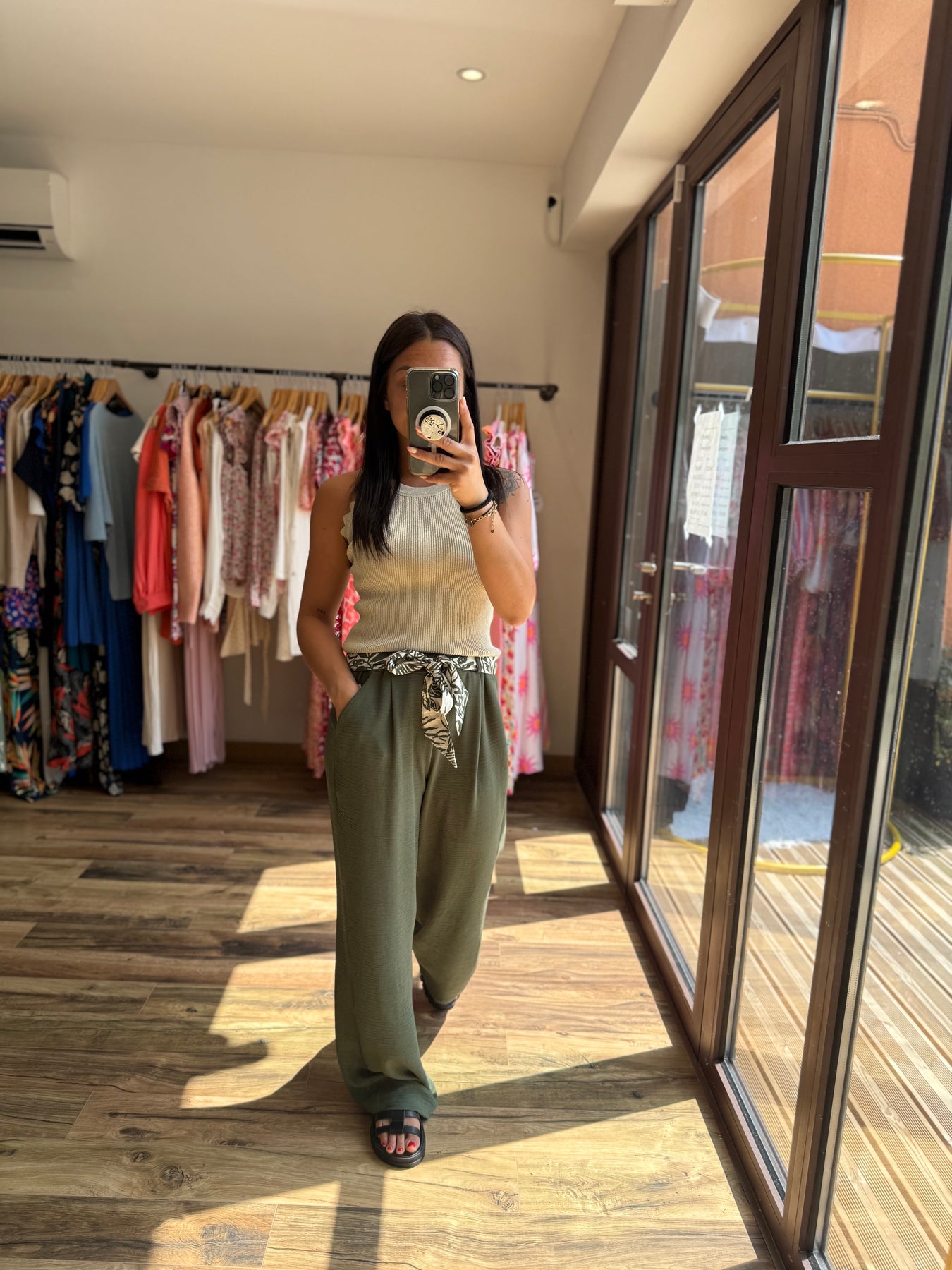 Ce top à la fois chic et discret est une pépite à porter de jour comme de nuit. On craque pour ses bords festonnés et son effet métallisé subtil. À associer avec un pantalon fluide comme l’Eliam kaki pour un look confortable et raffiné ✨