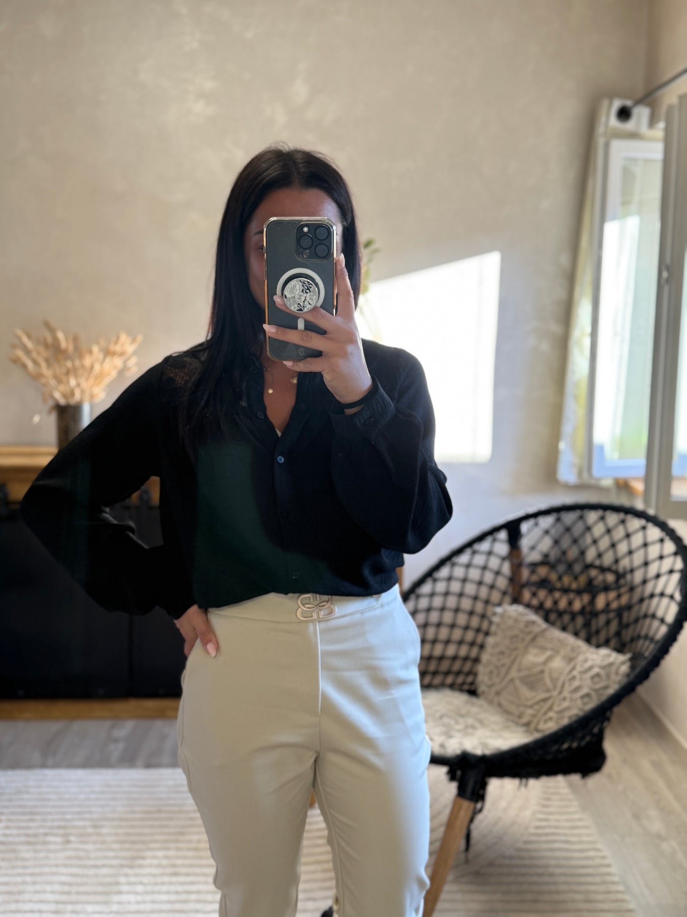 ✨ Chemise noire “Sony” – Élégance chic & détails raffinés
