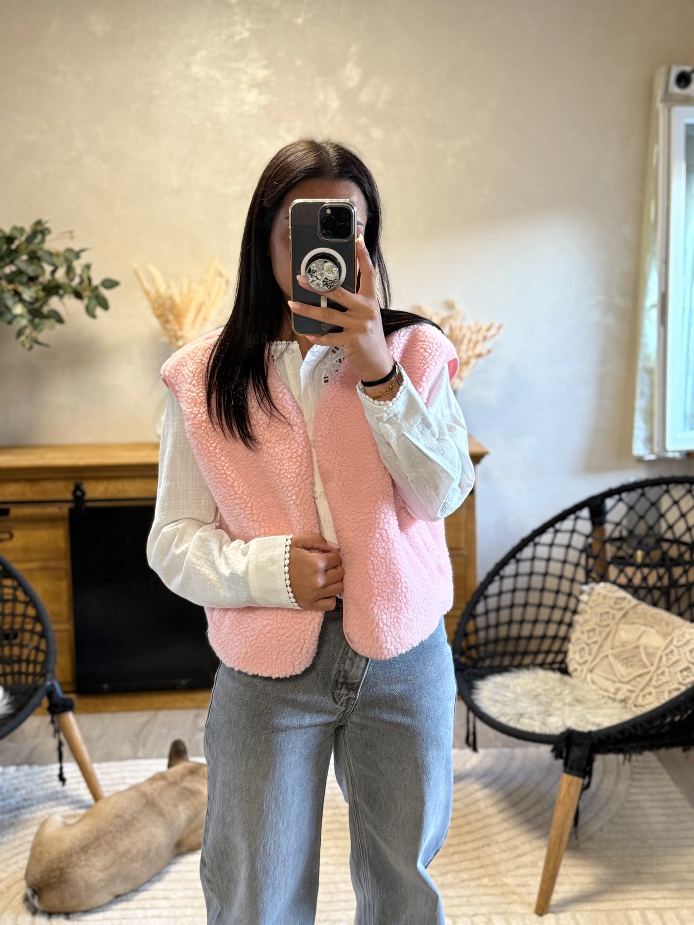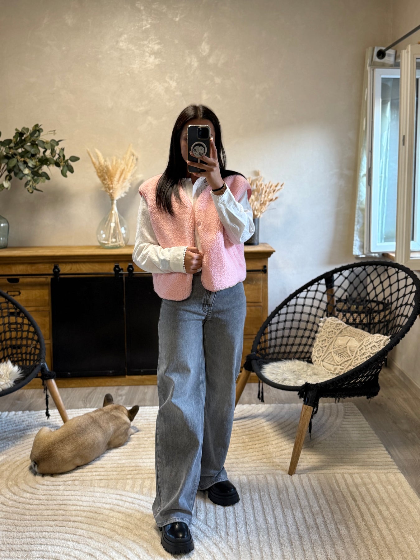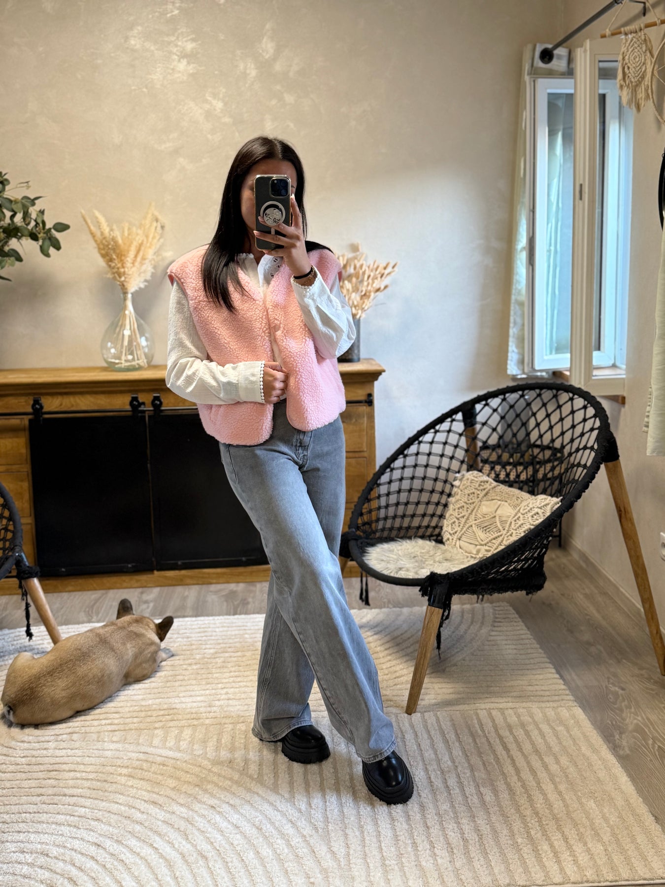 💕 Gilet sans manches “Meryl” rose – Douceur & style cocooning