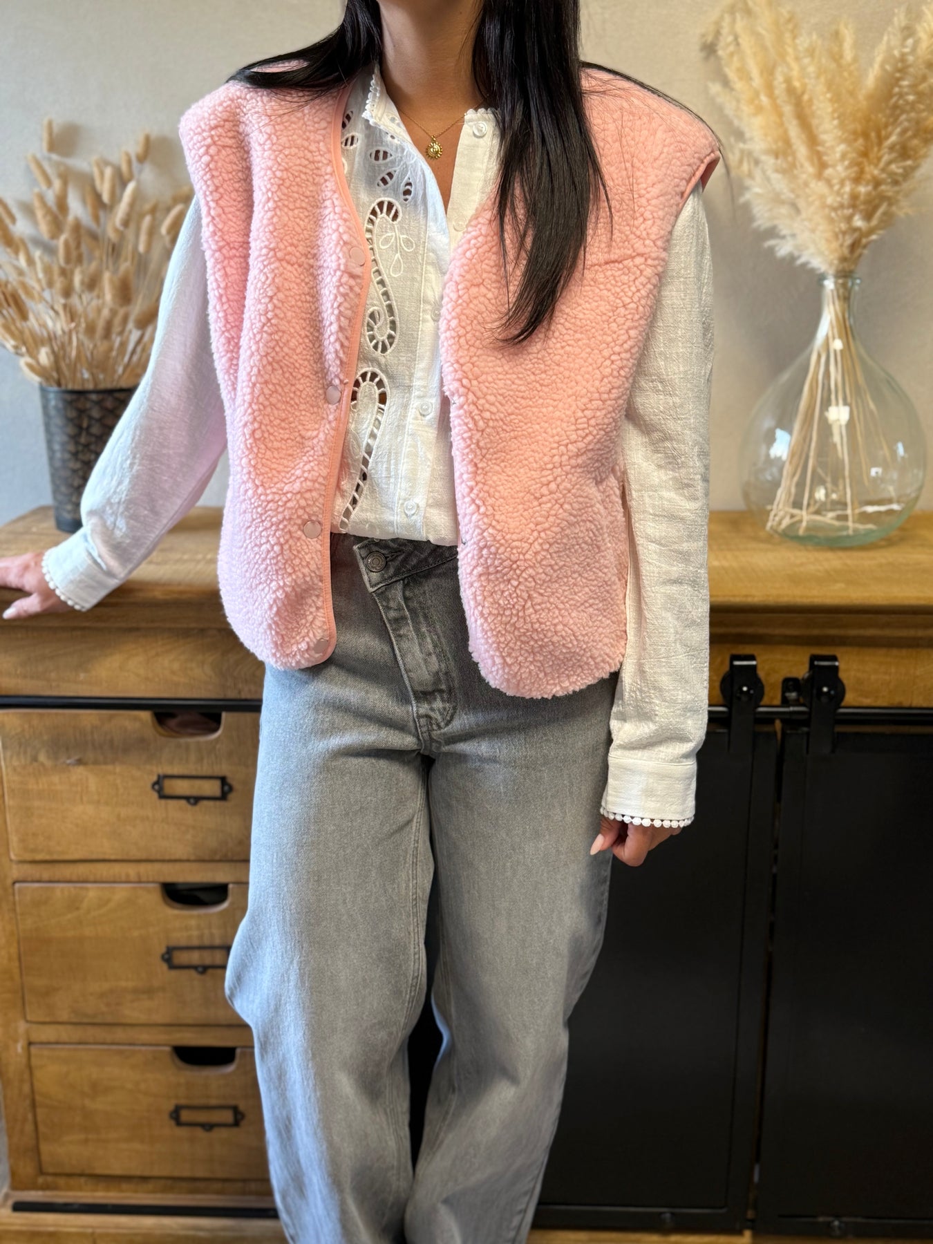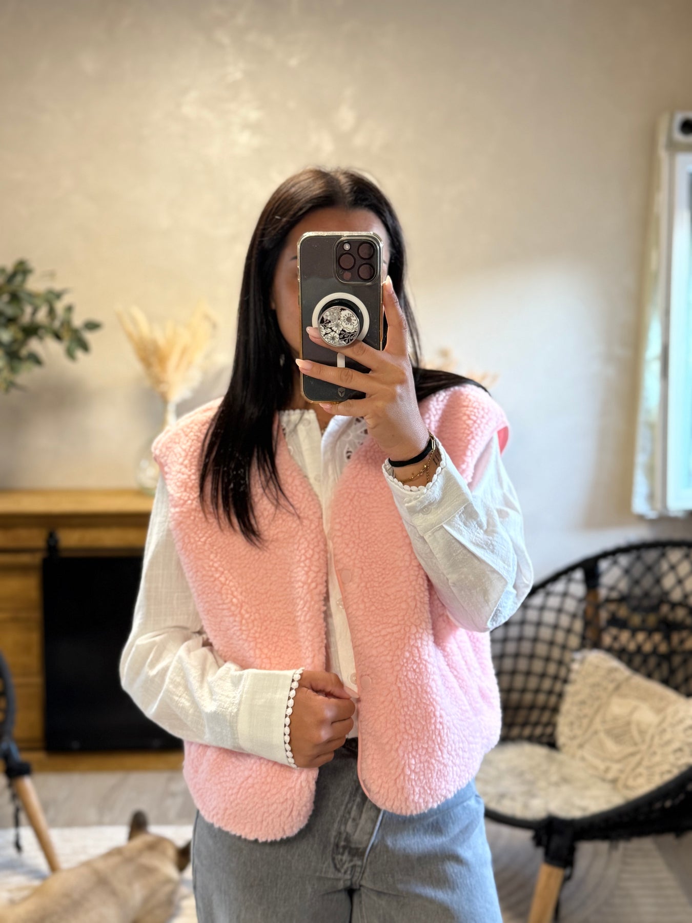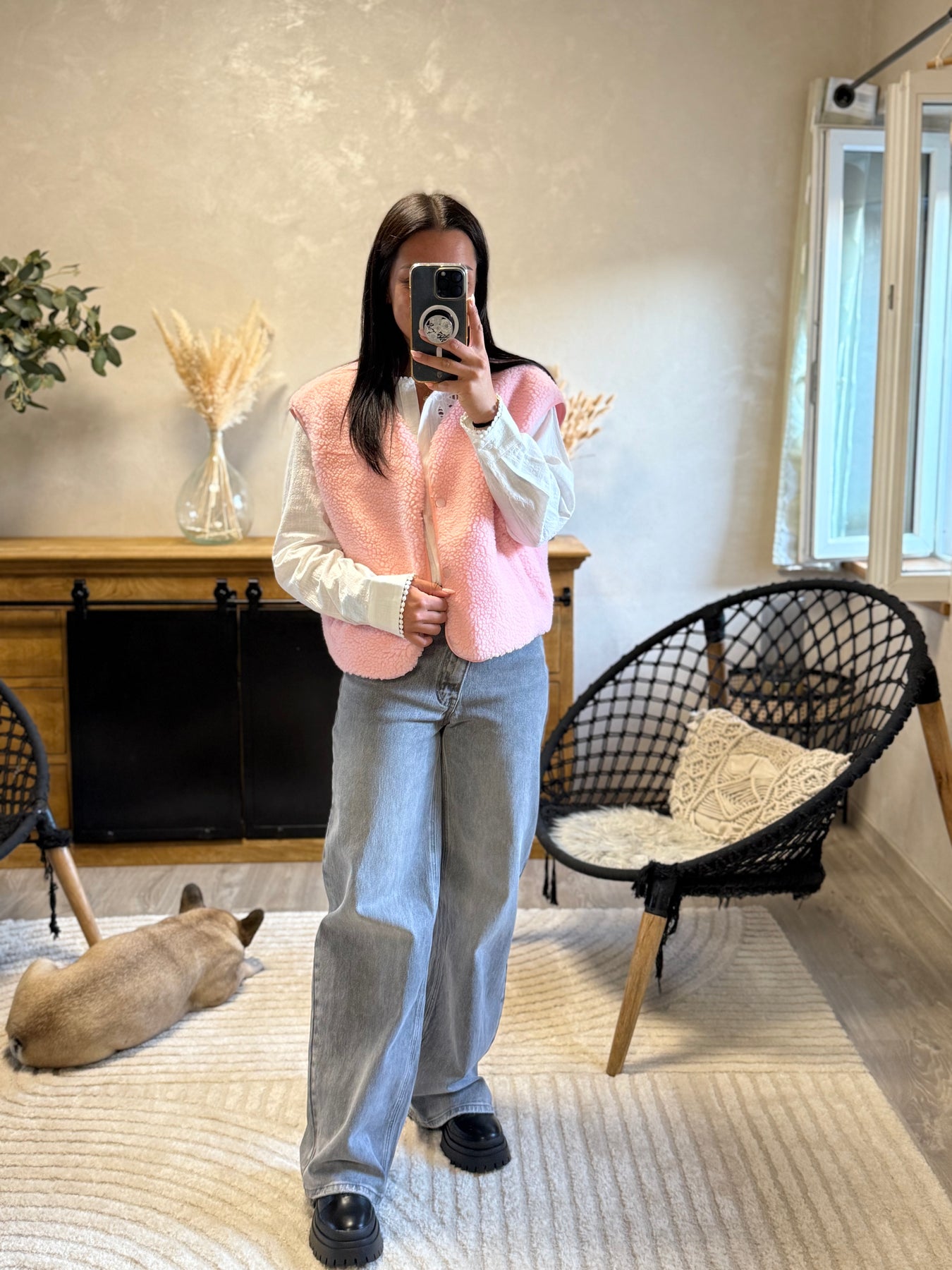 💕 Gilet sans manches “Meryl” rose – Douceur & style cocooning