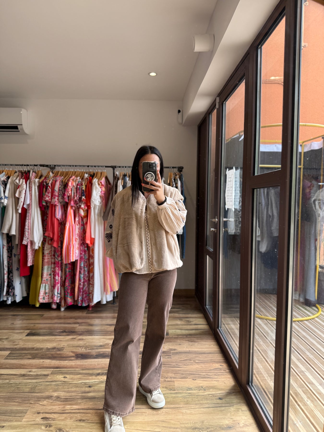 Un indispensable pour l’automne-hiver ✨. Douce et chaude, cette veste en fausse fourrure apporte une touche cosy-chic à n’importe quelle tenue. Parfaite sur une blouse bohème comme “Moyra” ou simplement avec un jean, elle conjugue confort et style avec élégance.