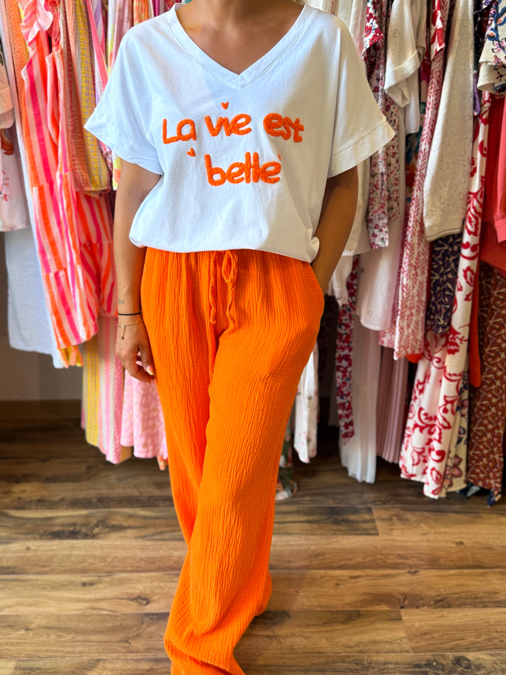 Teeshirt la vie est belle orange