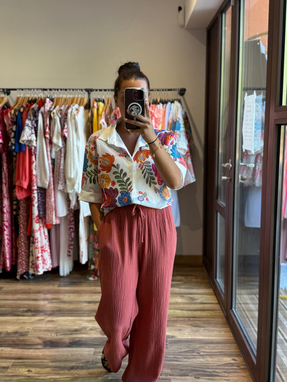 Pantalon gaze de coton terracotta