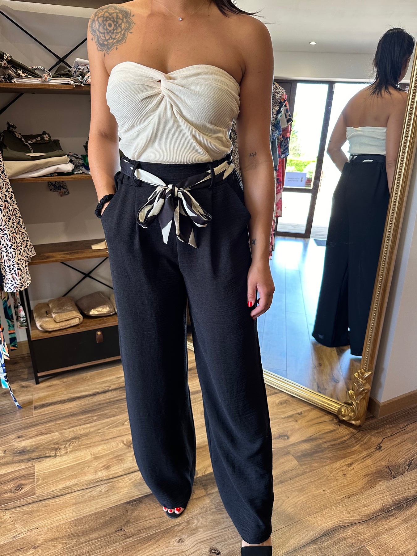 Alicia mesure 1m57 et met du 36 elle porte le bustier en SM avec le pantalon Eliam