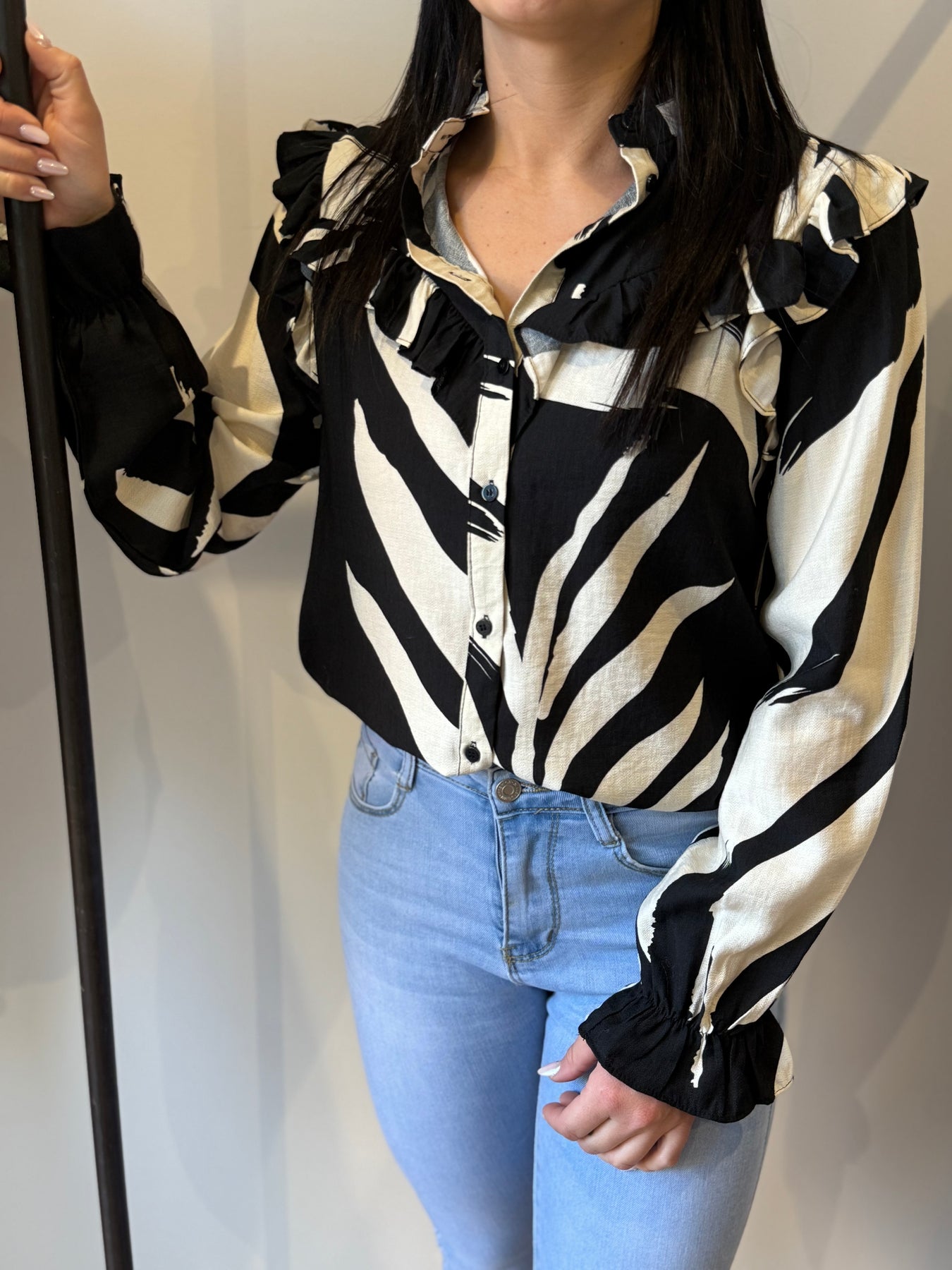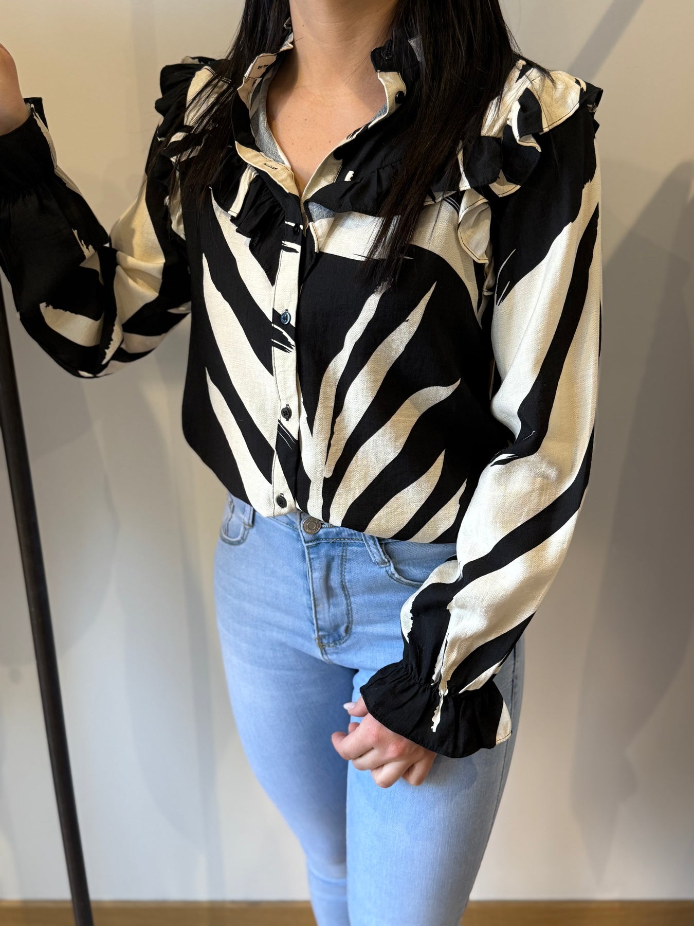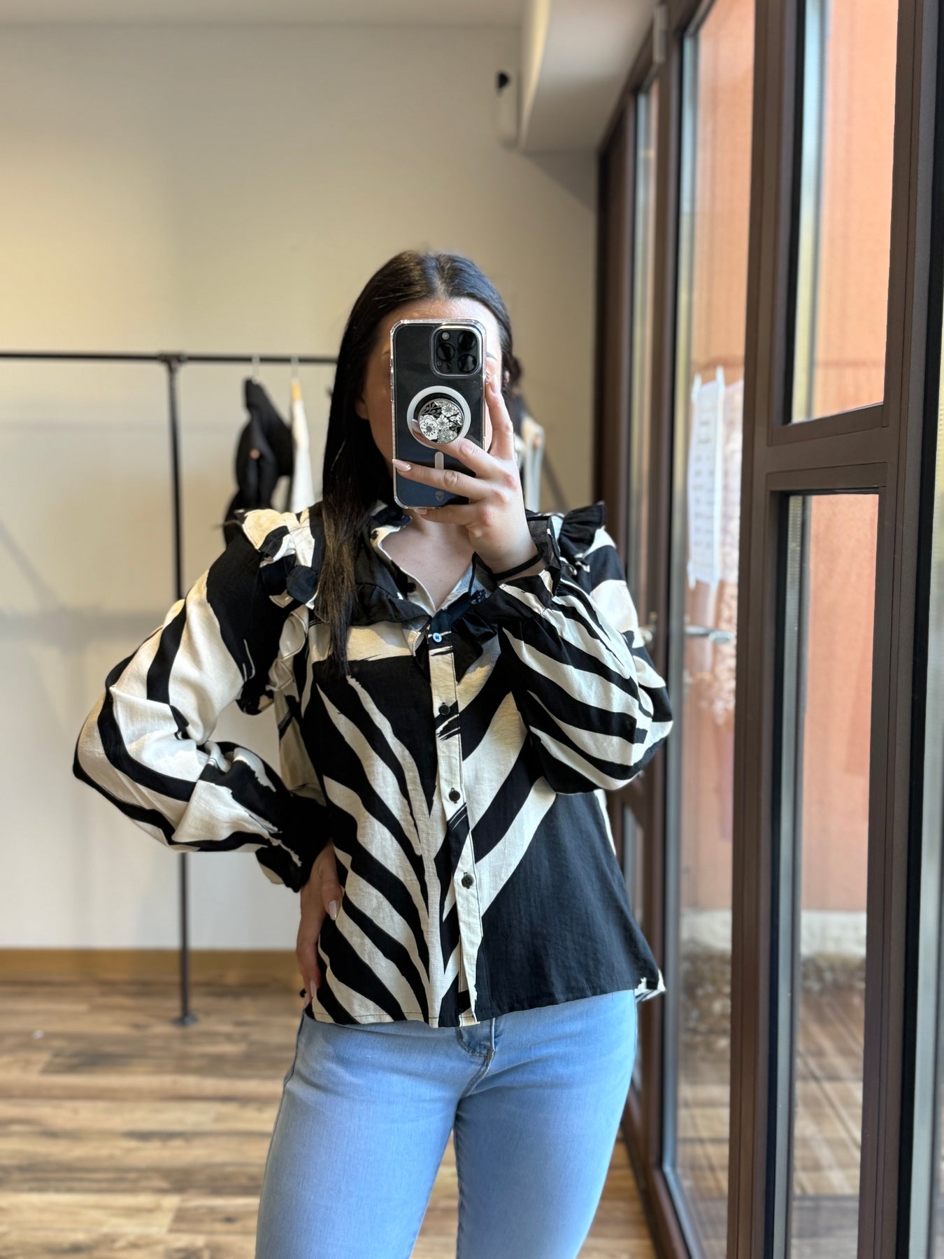 Alicia mesure 1m57 et met du 36 elle porte la chemise avec le jean Mandyse