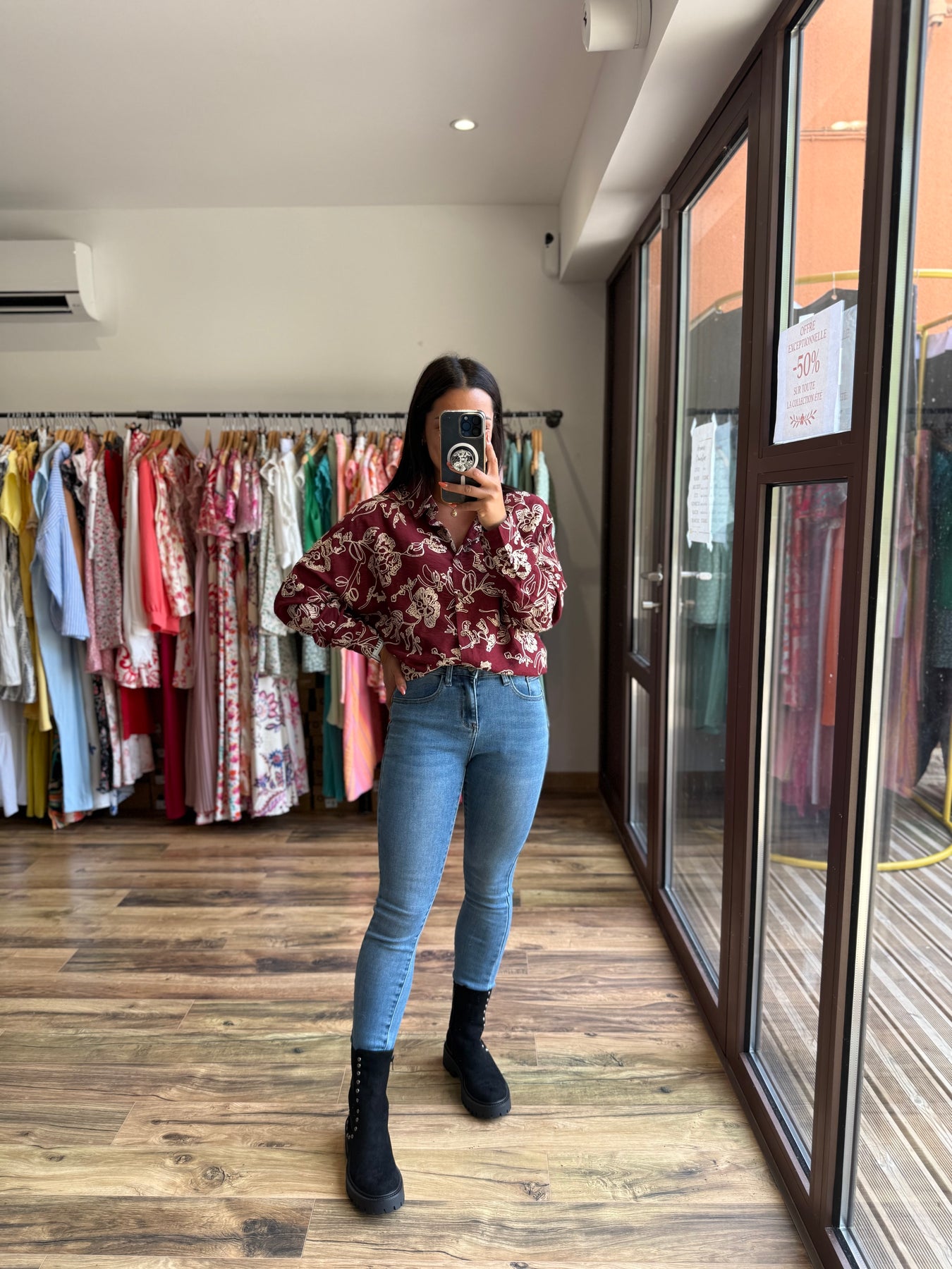 On craque pour son imprimé raffiné bordeaux aux touches dorées ✨, qui apporte tout de suite de l’éclat à la tenue. Une chemise fluide et élégante qui se porte aussi bien rentrée dans un jean pour un look casual que sur un pantalon habillé pour une touche plus sophistiquée 💕.