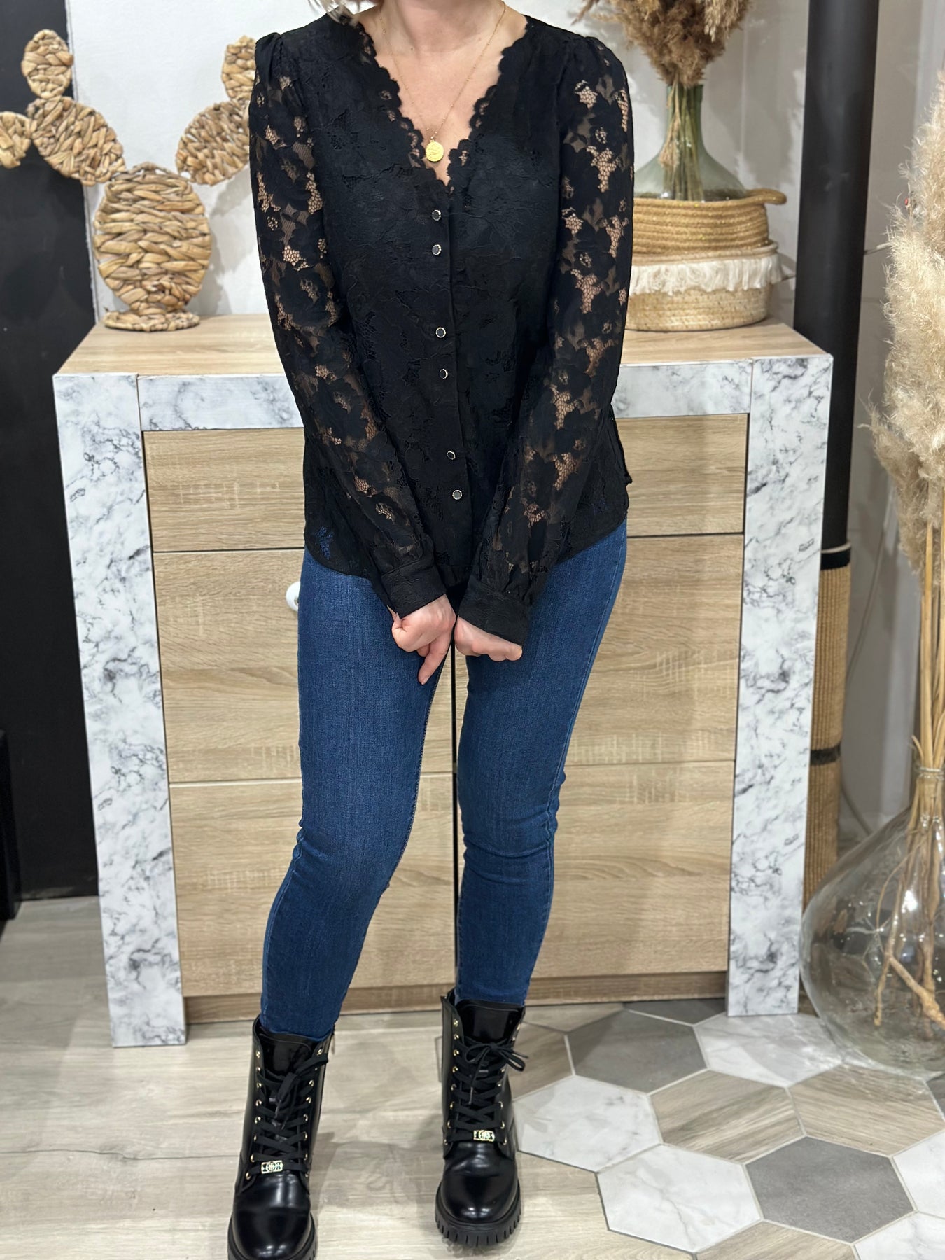 Elise mesure 1m62 et met du 36 elle porte la chemise avec le jean Crystal