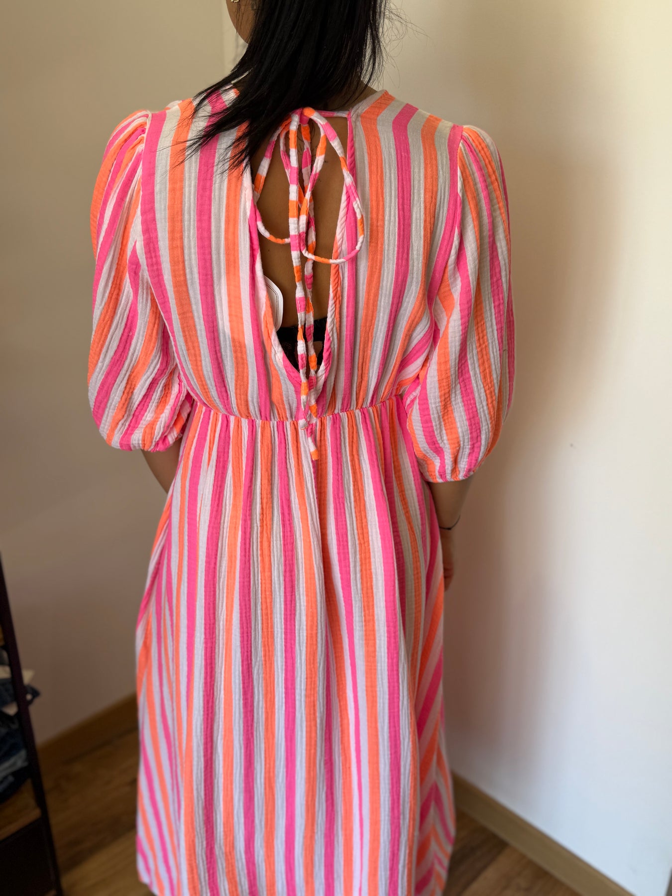 - Coloris : rayures verticales rose, orange fluo, fuchsia et blanc