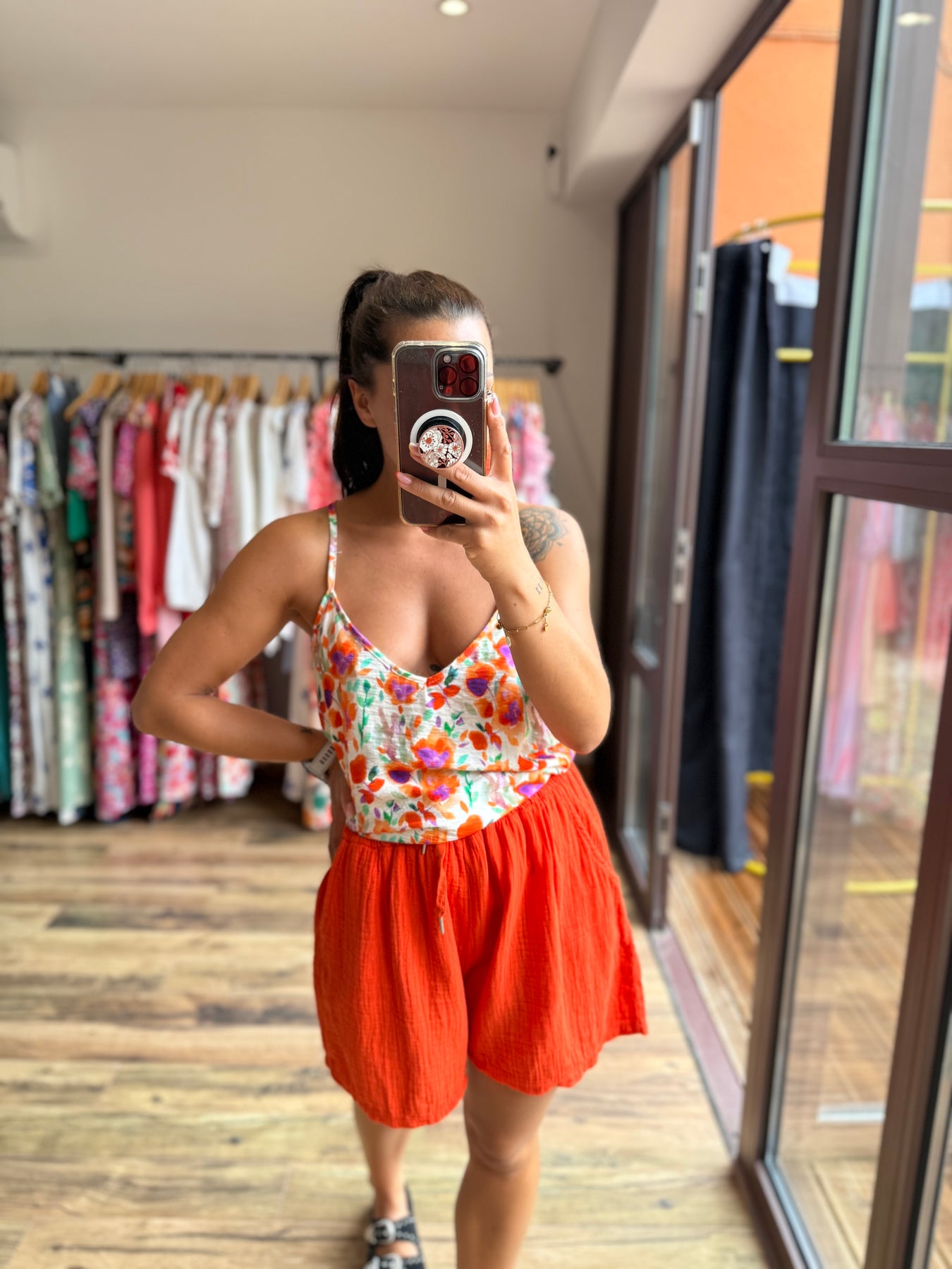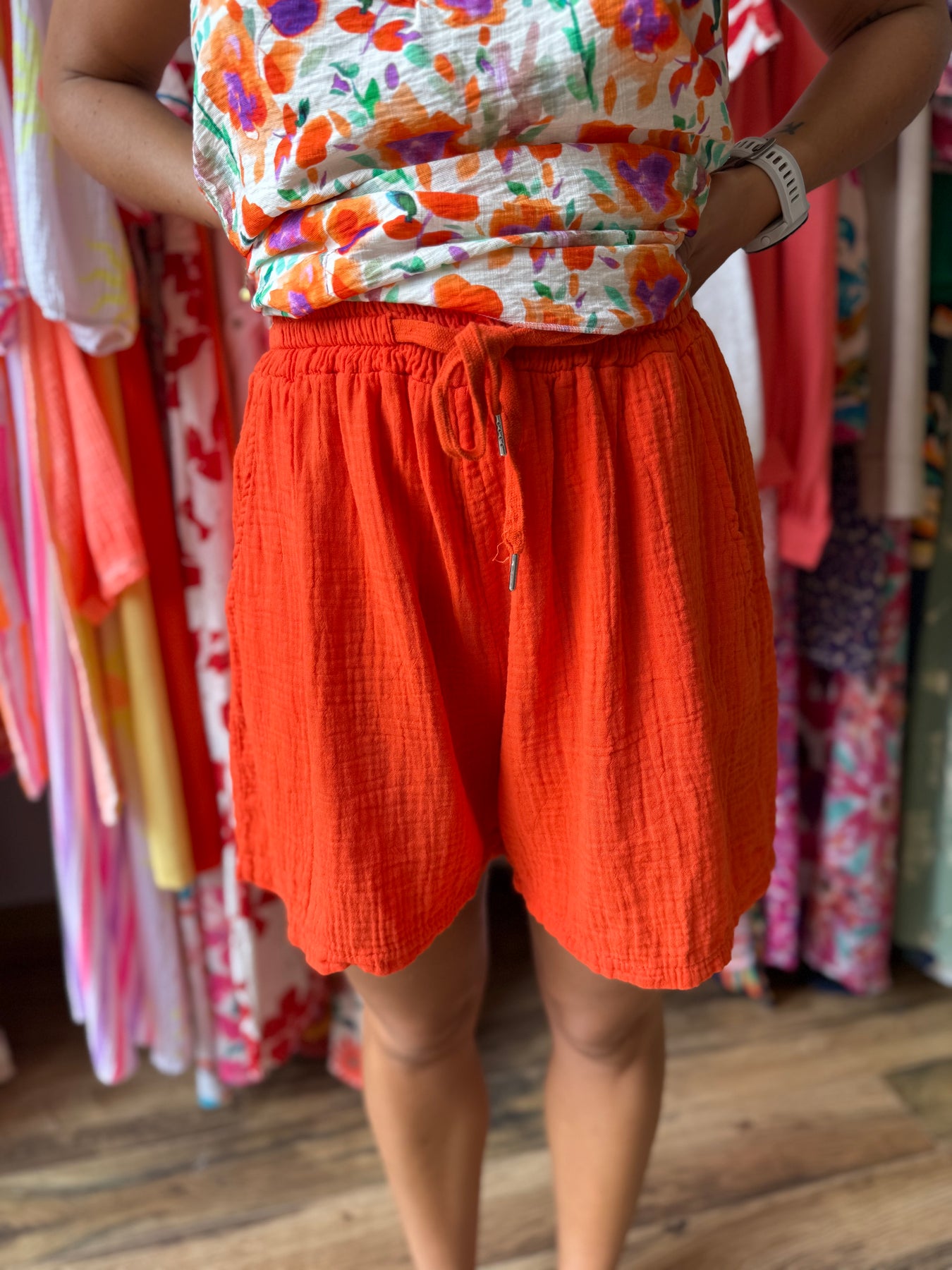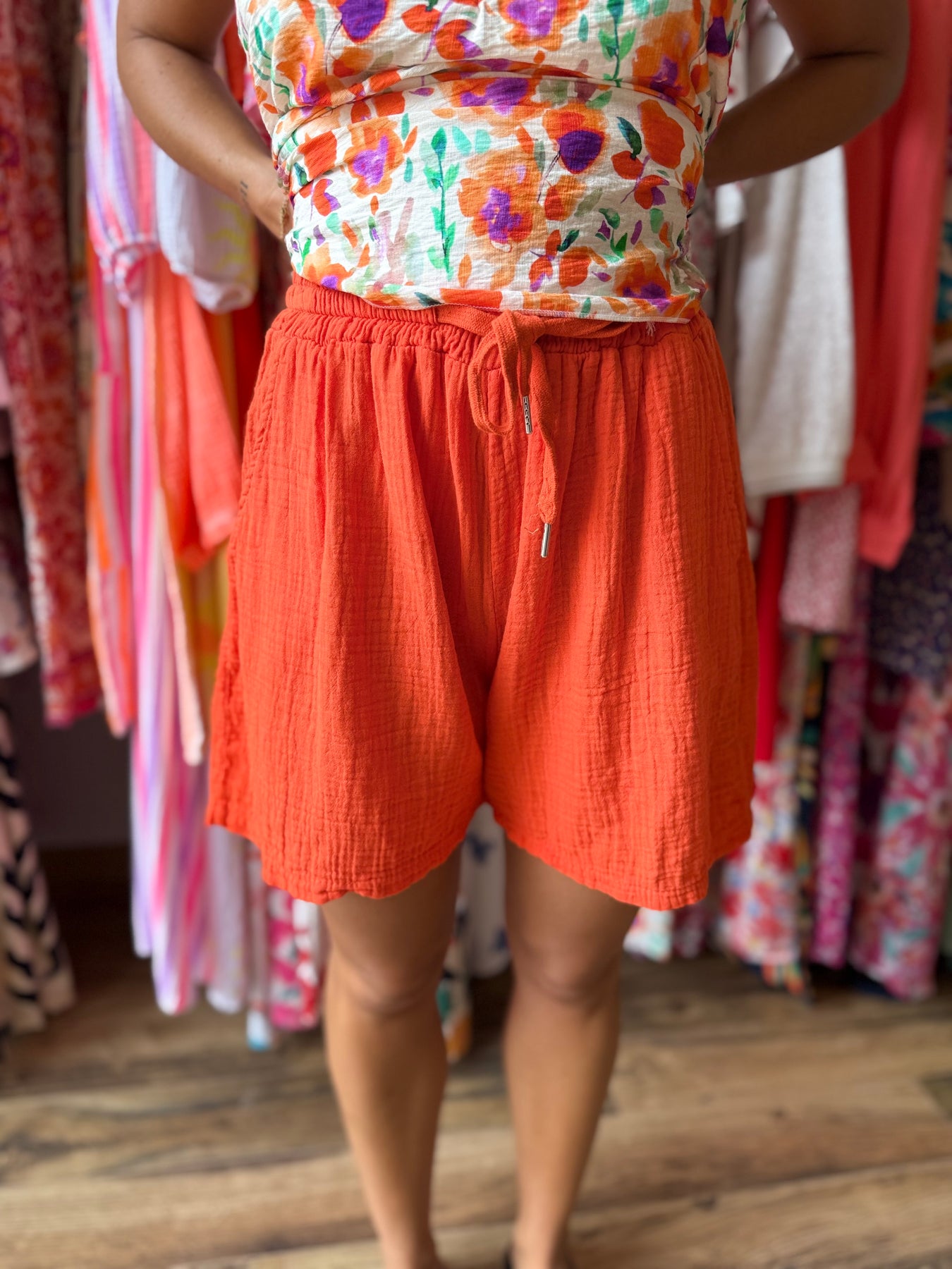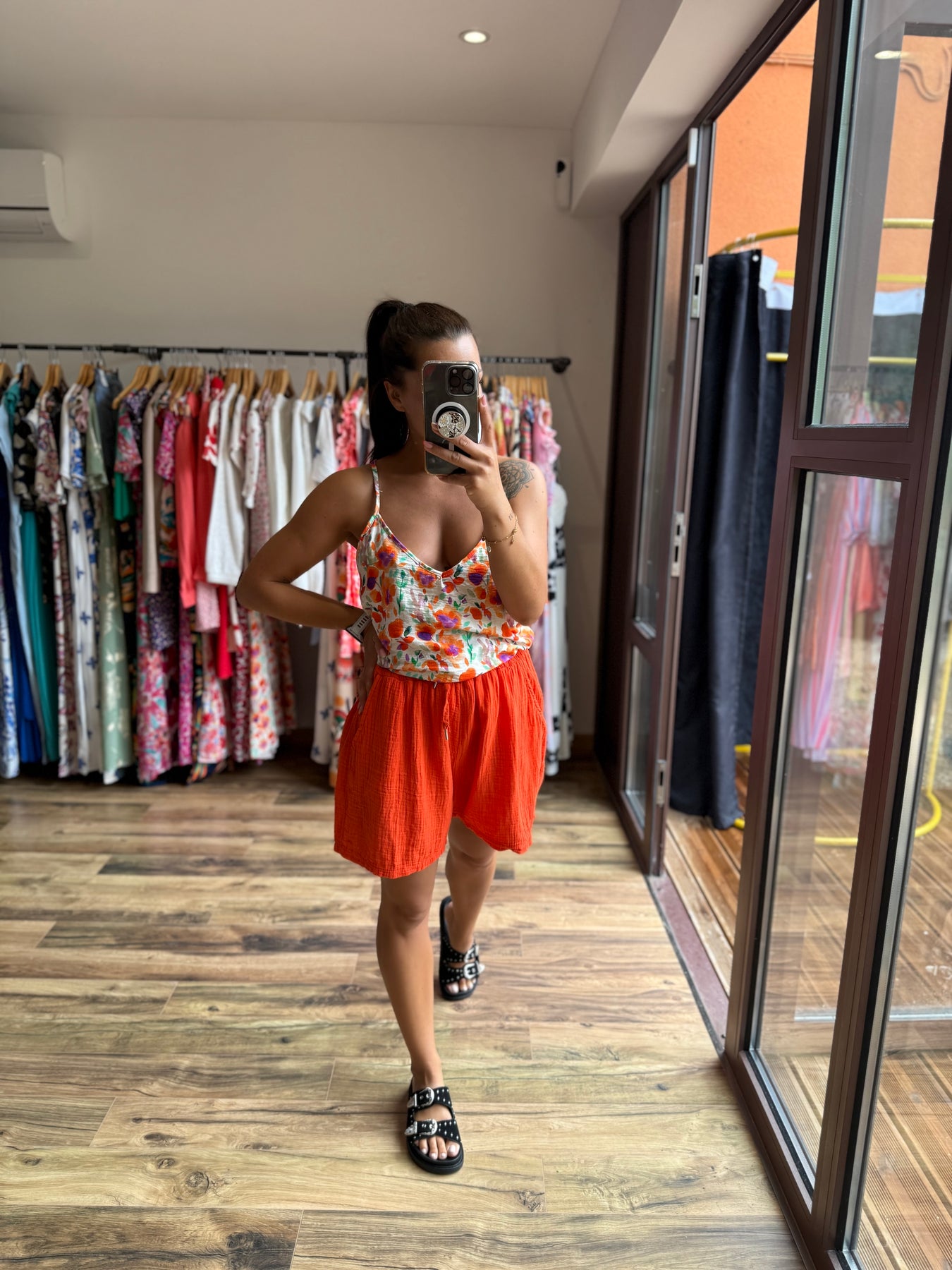 🍊 Short en gaze de coton orange – Ultra confort & vitaminé ! 🍊