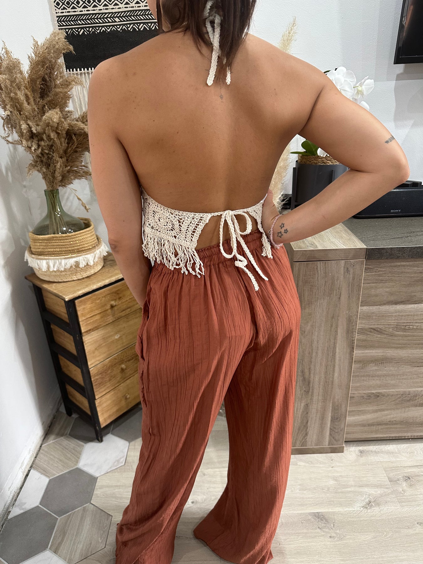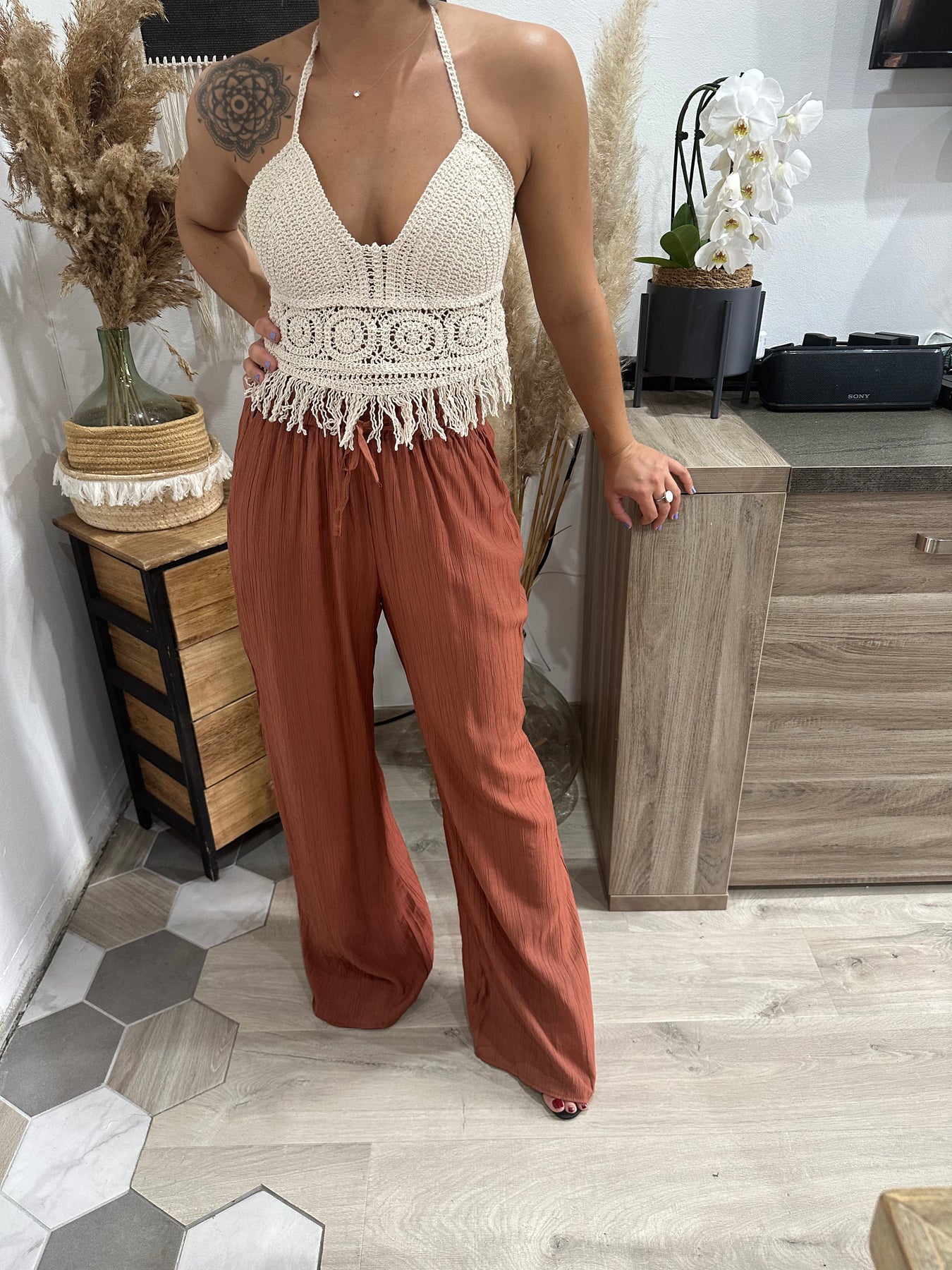 Alicia mesure 1m57 et met du 36/38 le top est associé au pantalon Berni