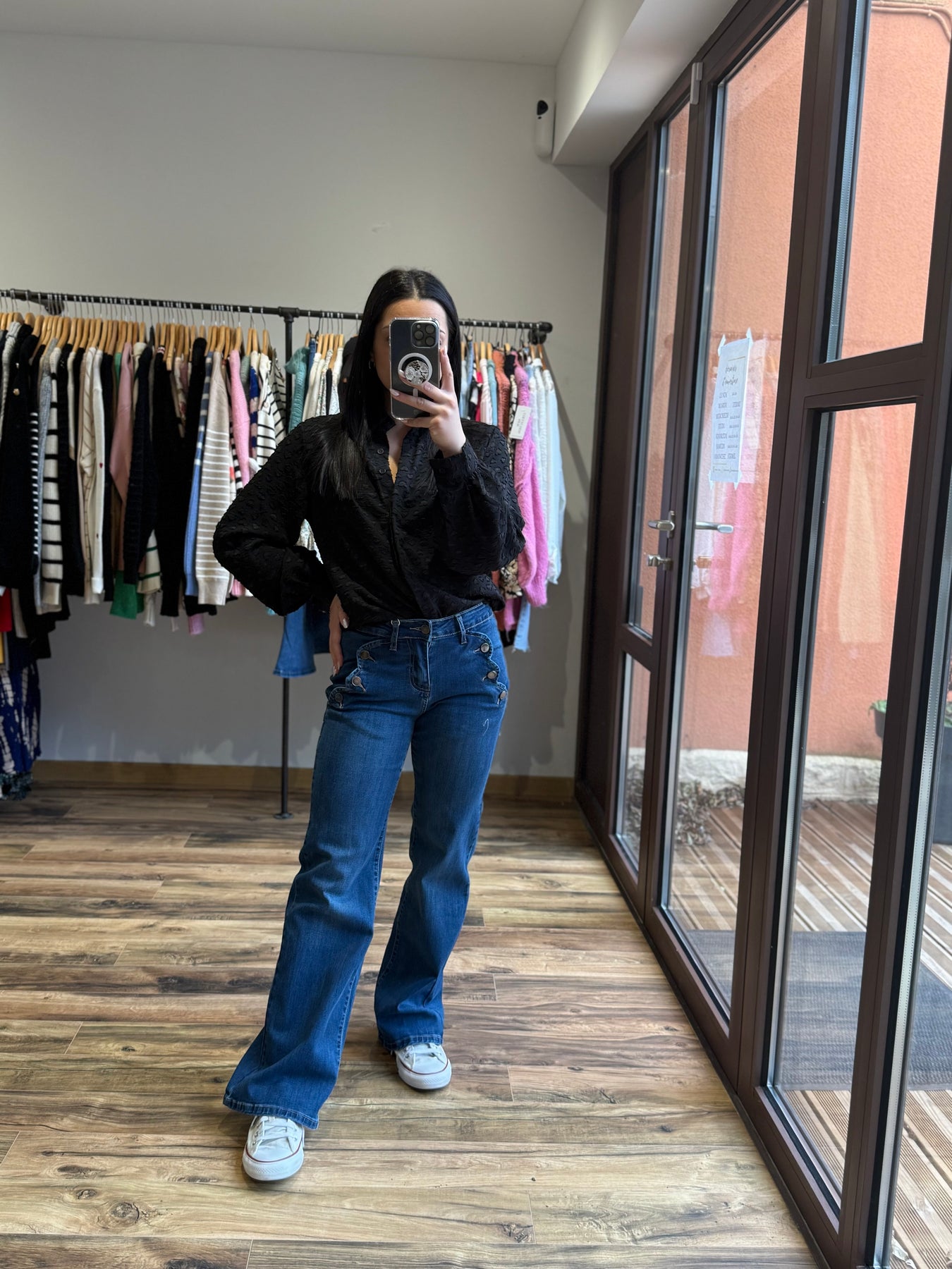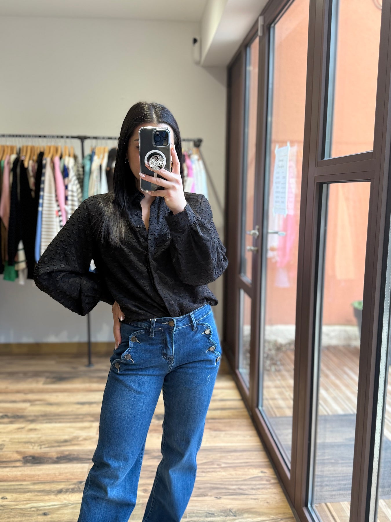 Alicia mesure 1m57 et met du 36 elle porte la chemise avec le jean flair Valentin