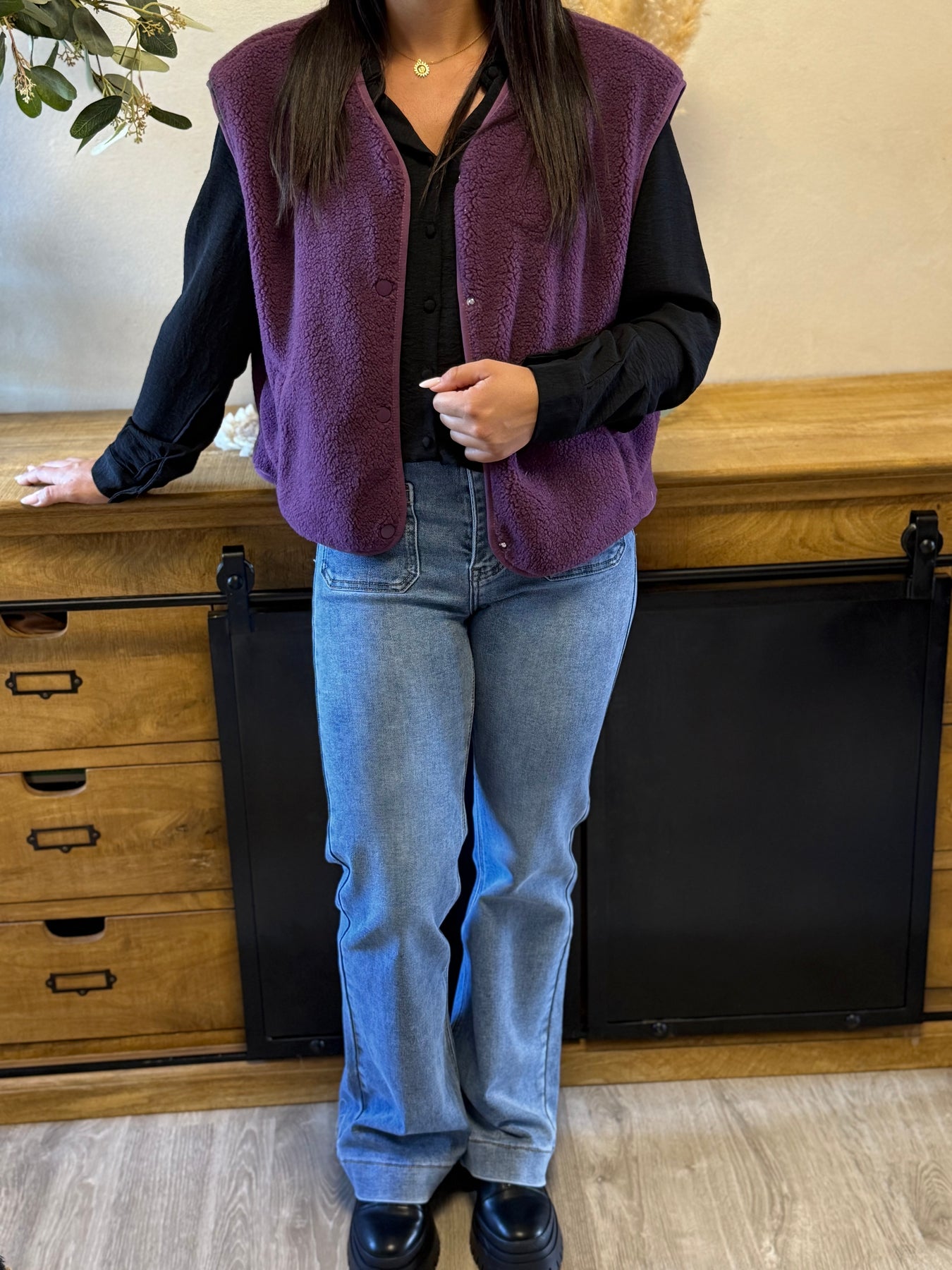 💜 Gilet “Meryl” prune – Douceur & style décontracté