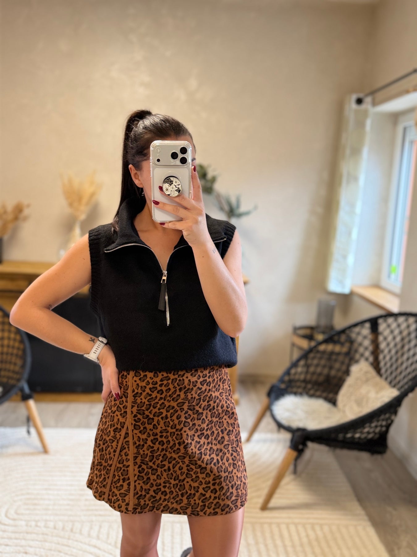 Son imprimé animalier et sa coupe flatteuse dynamisent n’importe quelle tenue. À associer avec un pull uni ou un top près du corps pour un look audacieux et tendance !