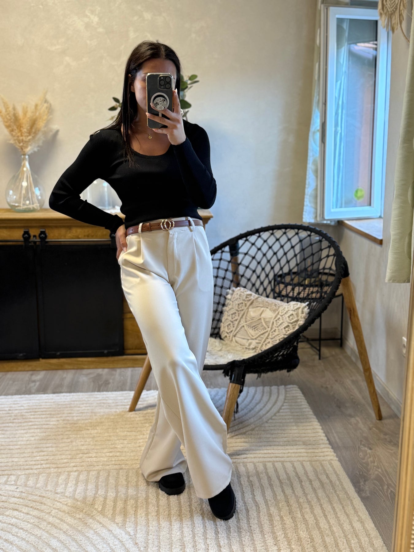Le pantalon Berlioz beige est une pièce incontournable ✨. Sa coupe large et fluide sublime la silhouette, tout en restant ultra confortable. On l’aime autant avec une blouse habillée qu’avec un pull ou un gilet pour un look élégant du quotidien 🤍.