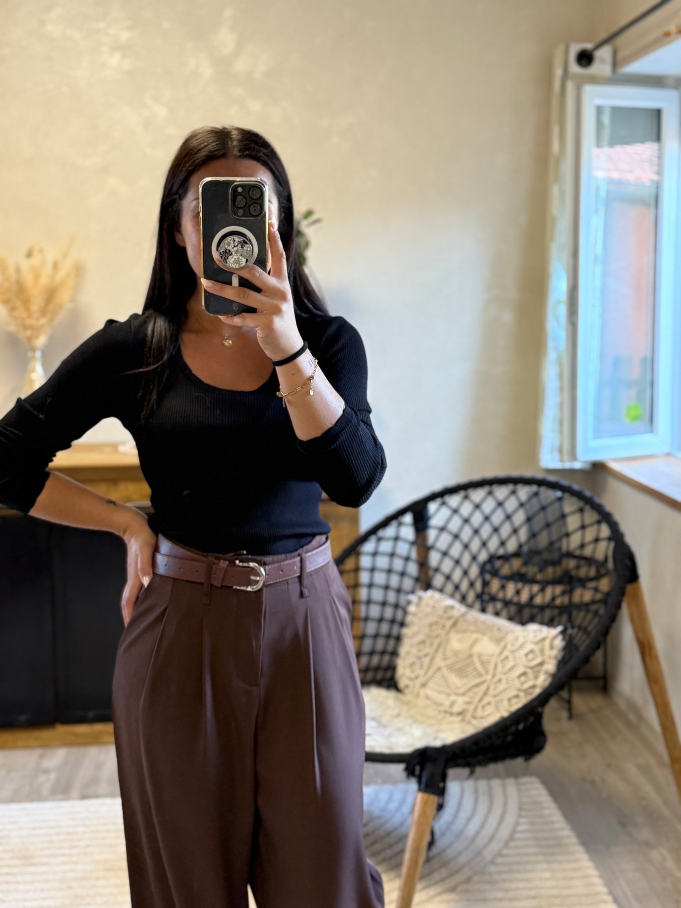 👉 Ici, il est associé au pull fin Simah noir pour un look minimaliste et élégant.