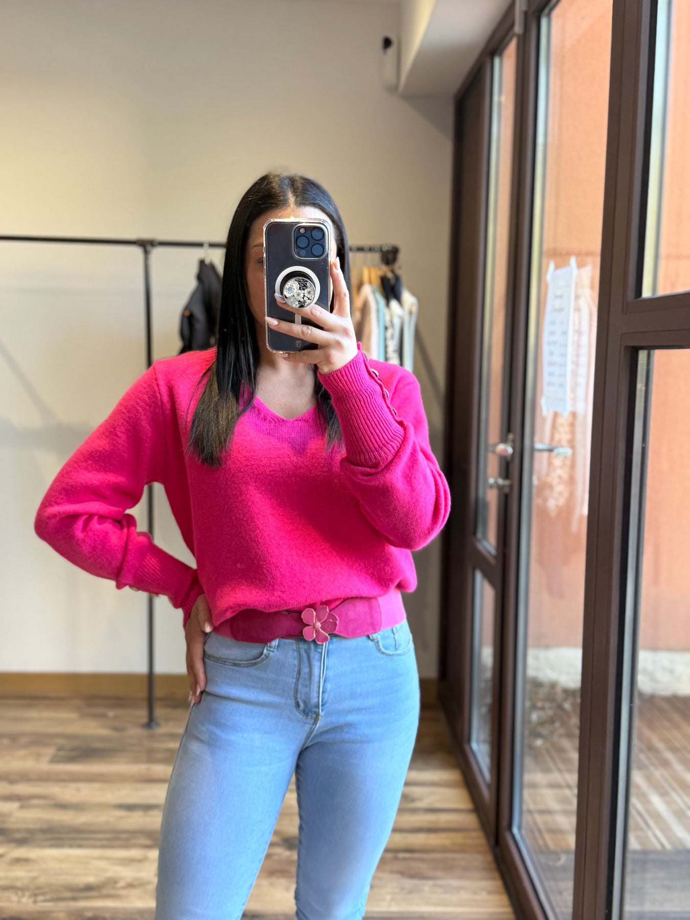 Alicia mesure 1m57 et met du 36 elle porte le pull avec