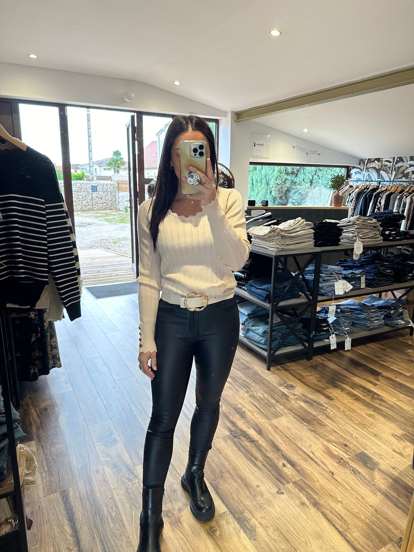 Festonnée sur les poignet et bas du pull