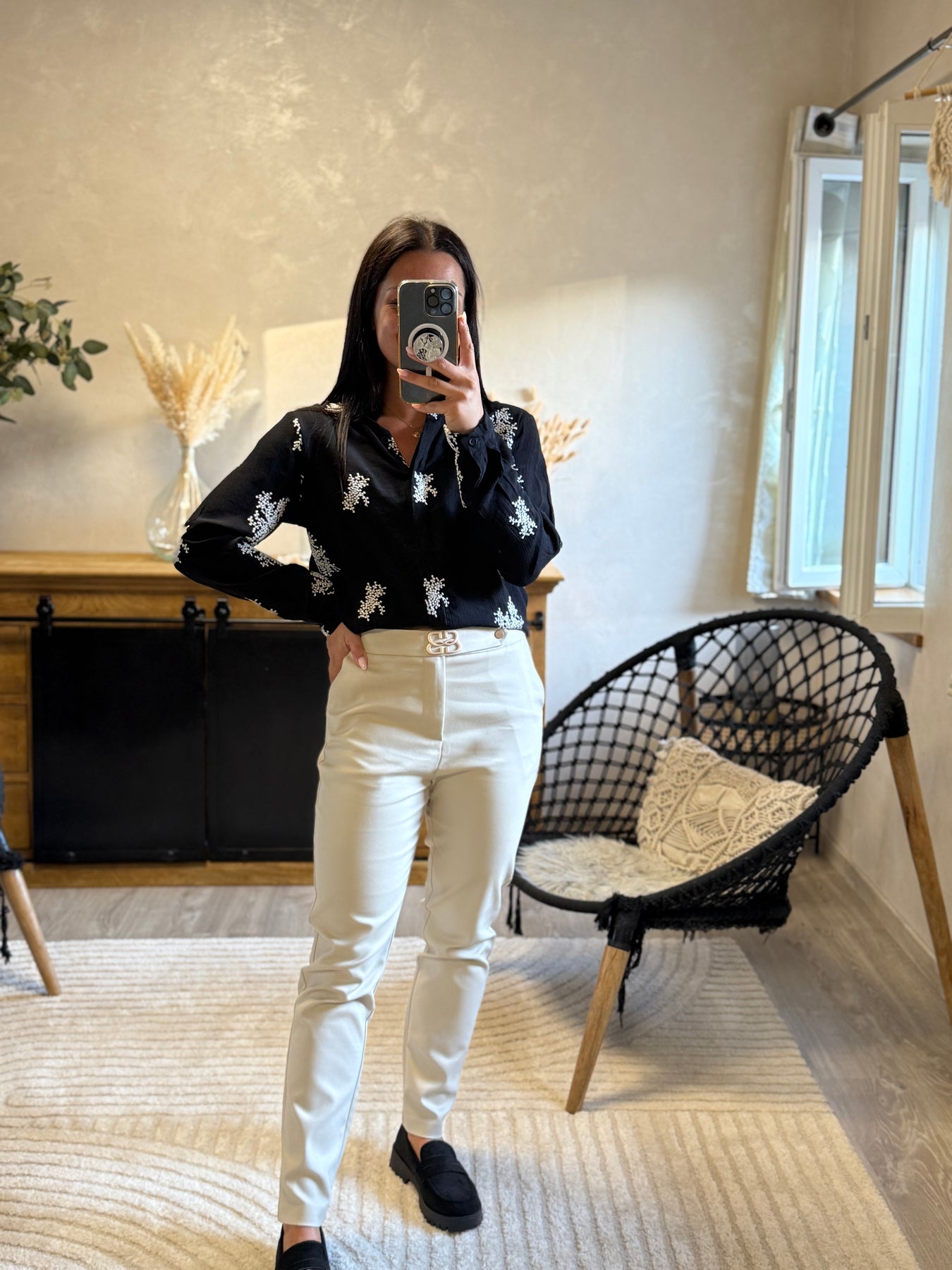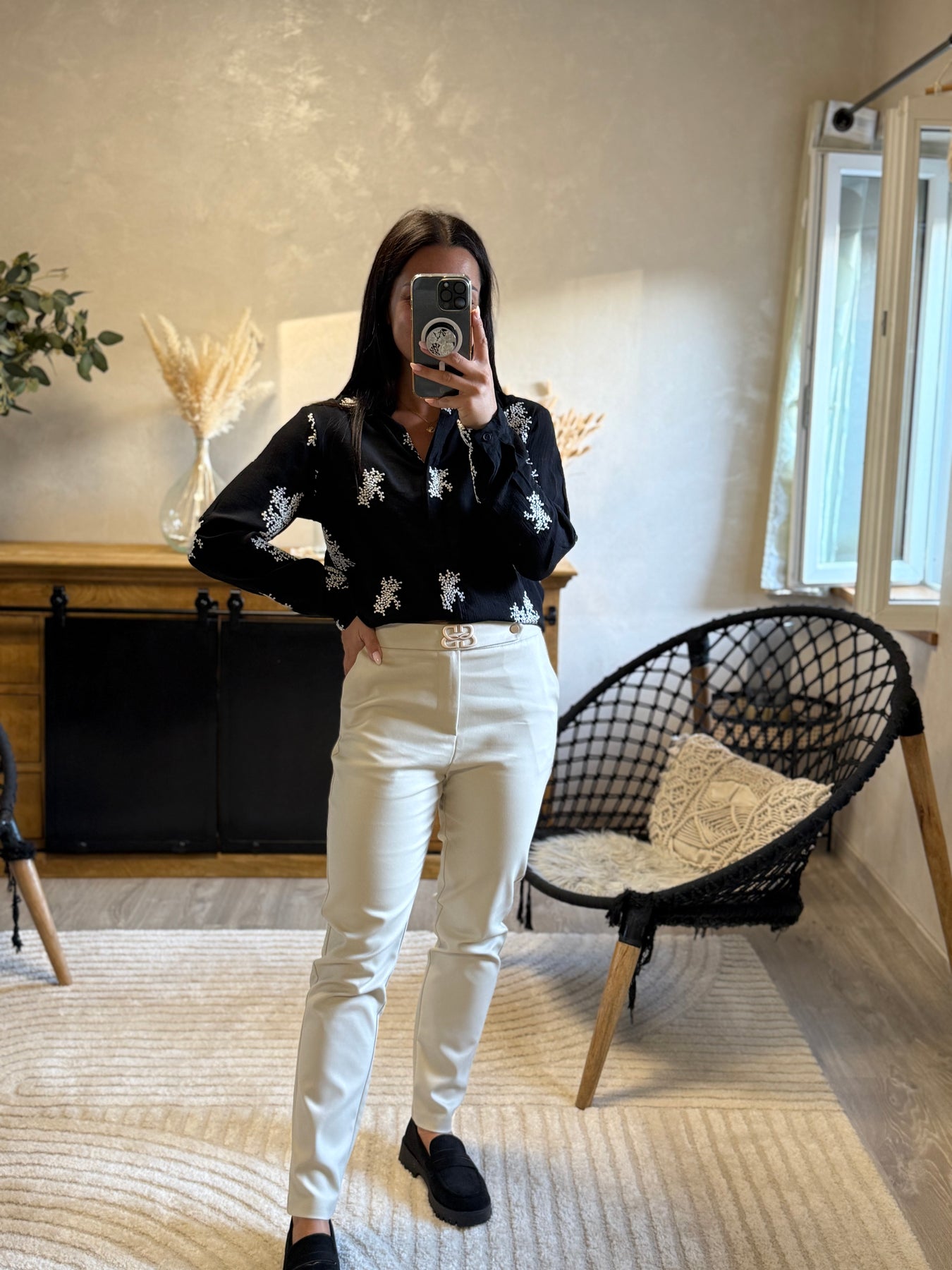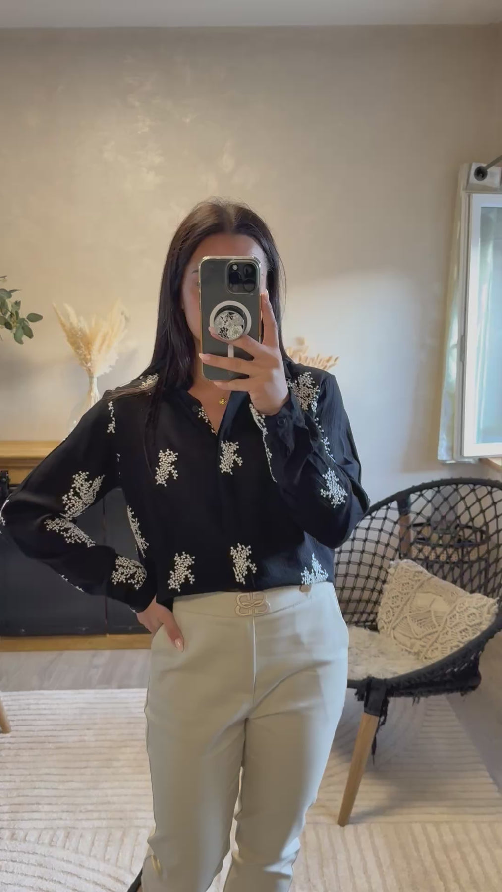 Chemise “Agath Curvy” – Élégance florale en noir et blanc 🌸