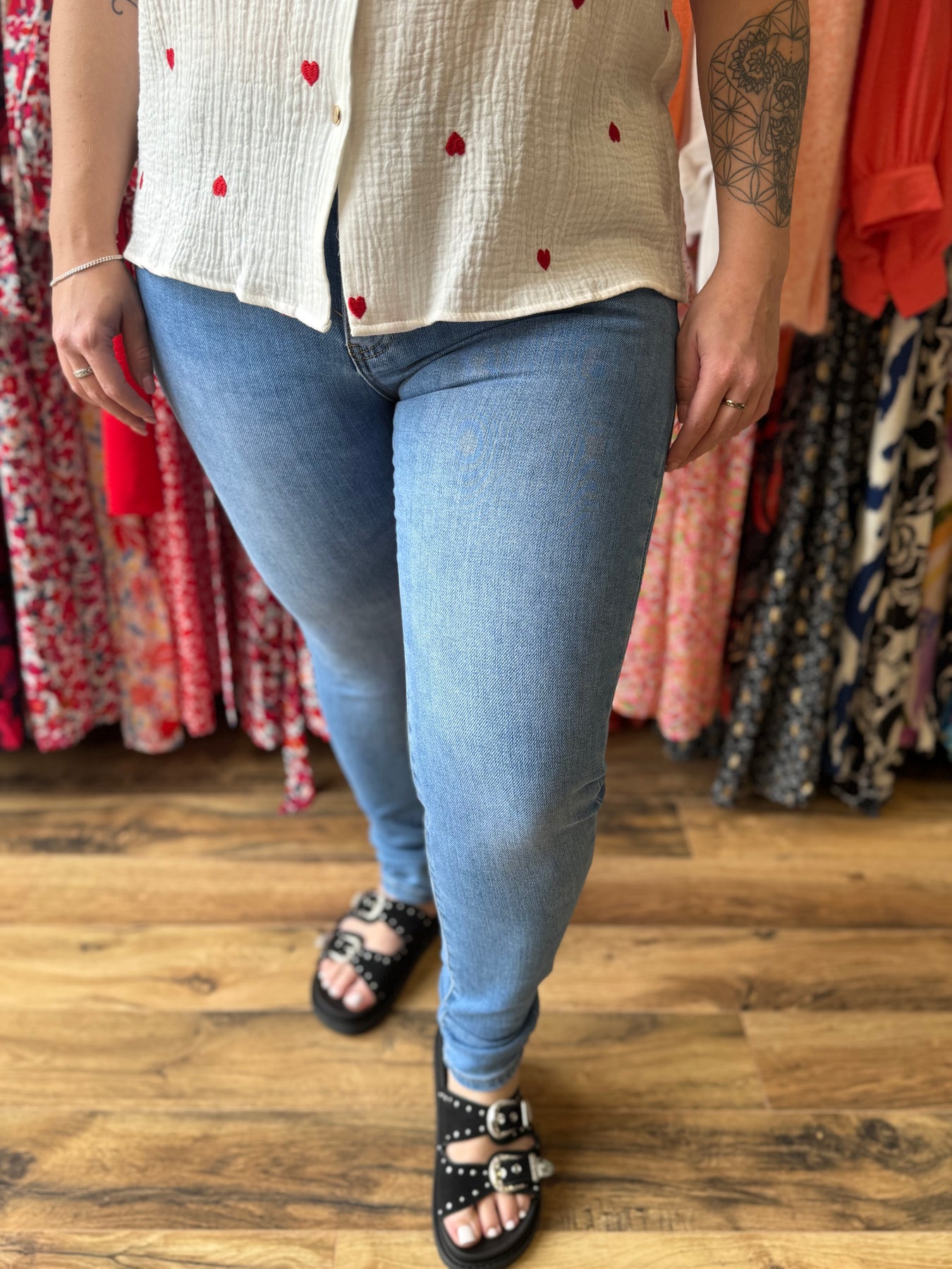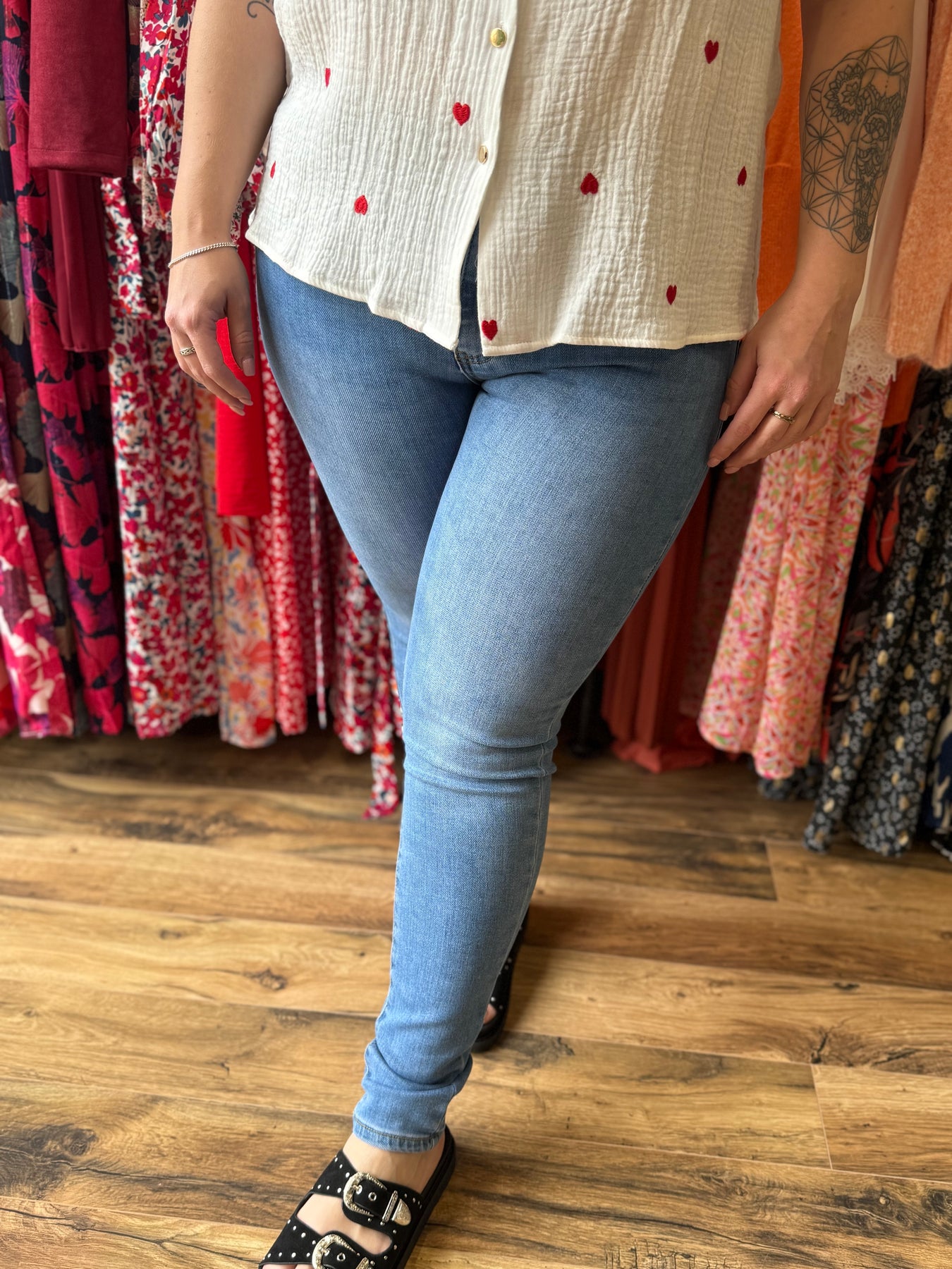 Un jean incontournable pour vos looks du quotidien. Sa coupe ajustée met les formes en valeur sans comprimer, et son tissu extensible assure une liberté de mouvement idéale. Facile à porter avec une blouse, un tee-shirt ou une chemise imprimée.