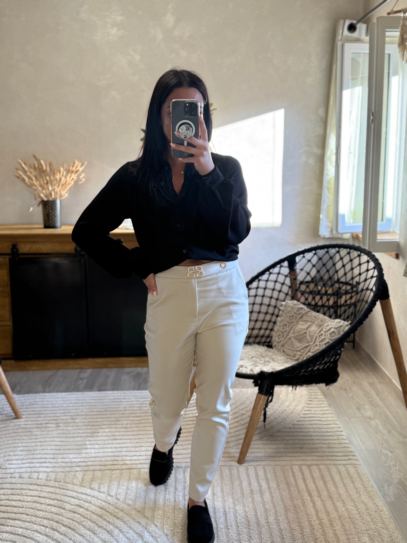 Un pantalon élégant et moderne qui met en valeur les formes ✨. Sa coupe confortable épouse la silhouette sans la marquer, idéal aussi bien pour une journée de travail qu’une sortie plus habillée. On adore son coloris beige intemporel, facile à accorder avec des chemises, des tops colorés ou un blazer pour un look tendance et féminin.