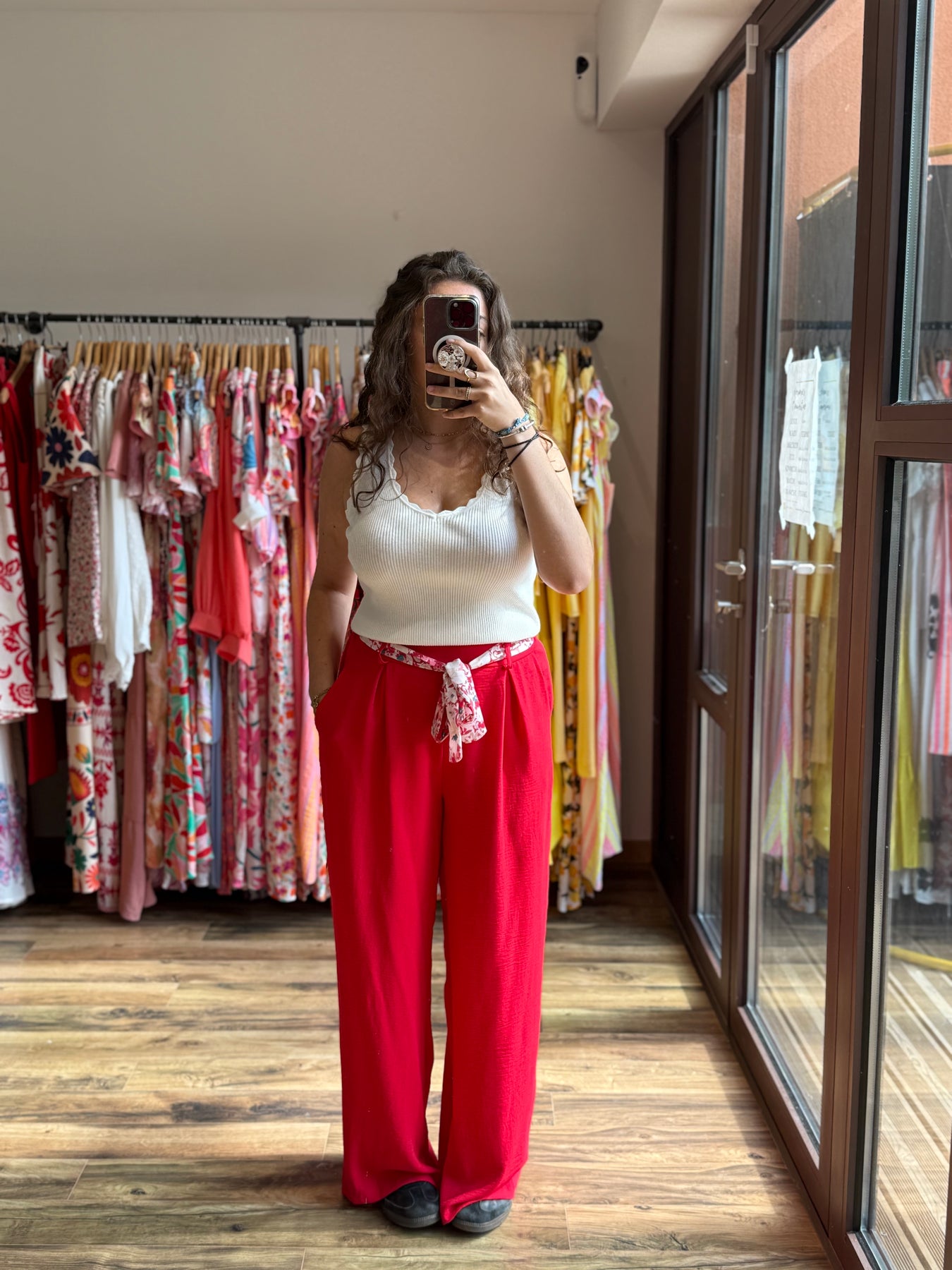 Le pantalon “Candice Curvy” est idéal pour les silhouettes généreuses : fluide, agréable à porter et ultra flatteur. Son rouge éclatant booste instantanément le look, et sa ceinture nouée apporte une touche féminine et tendance. On le porte aussi bien avec un top basique qu’une blouse fluide 💃✨