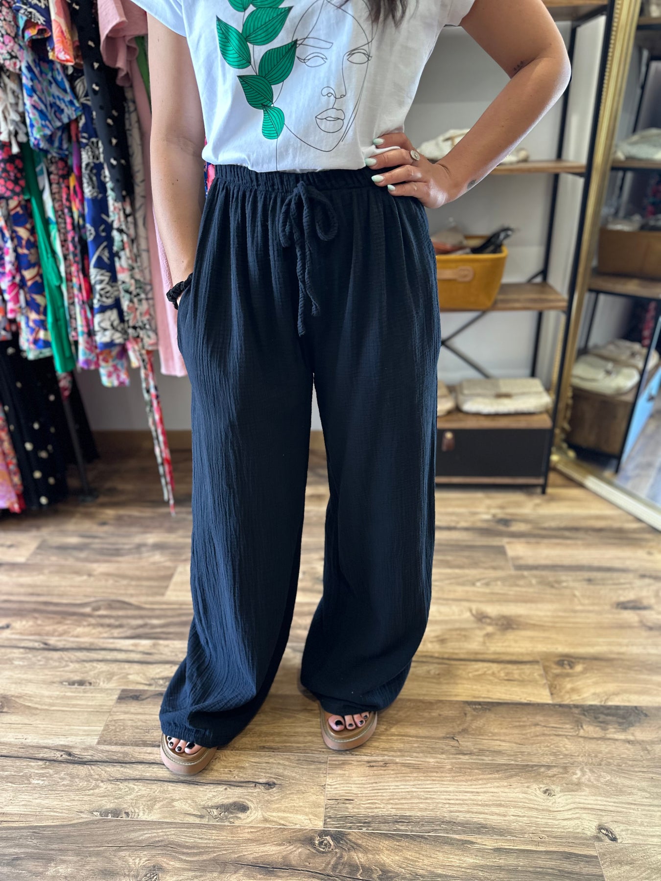Pantalon noir en gaze de coton – Confort & légèreté pour les courbes