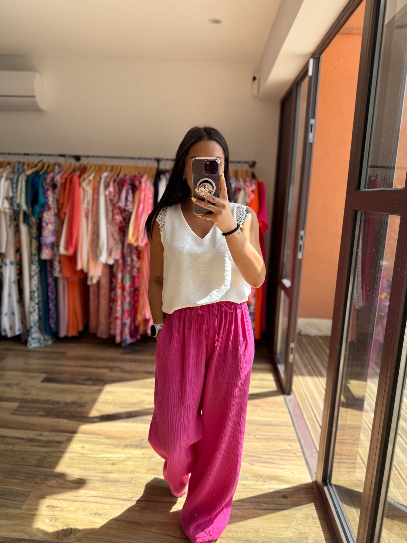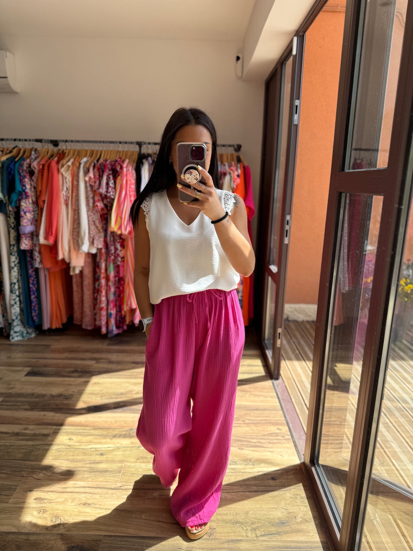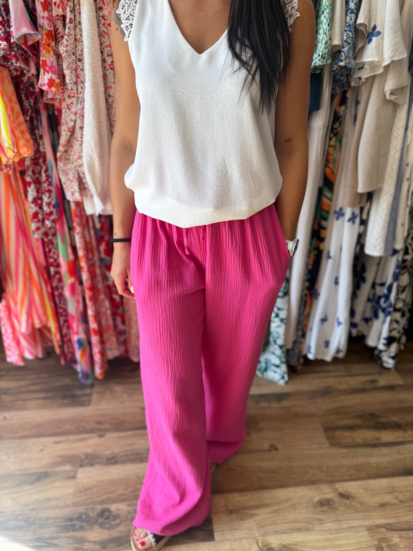 💖 Pantalon fuchsia en gaze de coton – Version CURVY