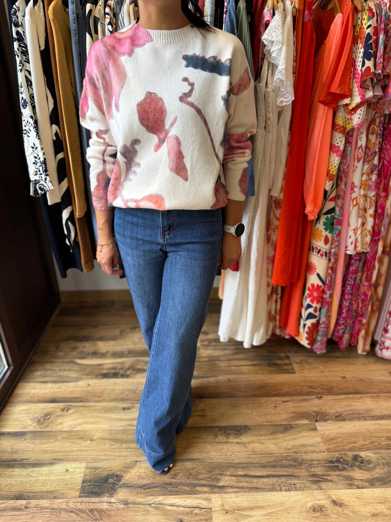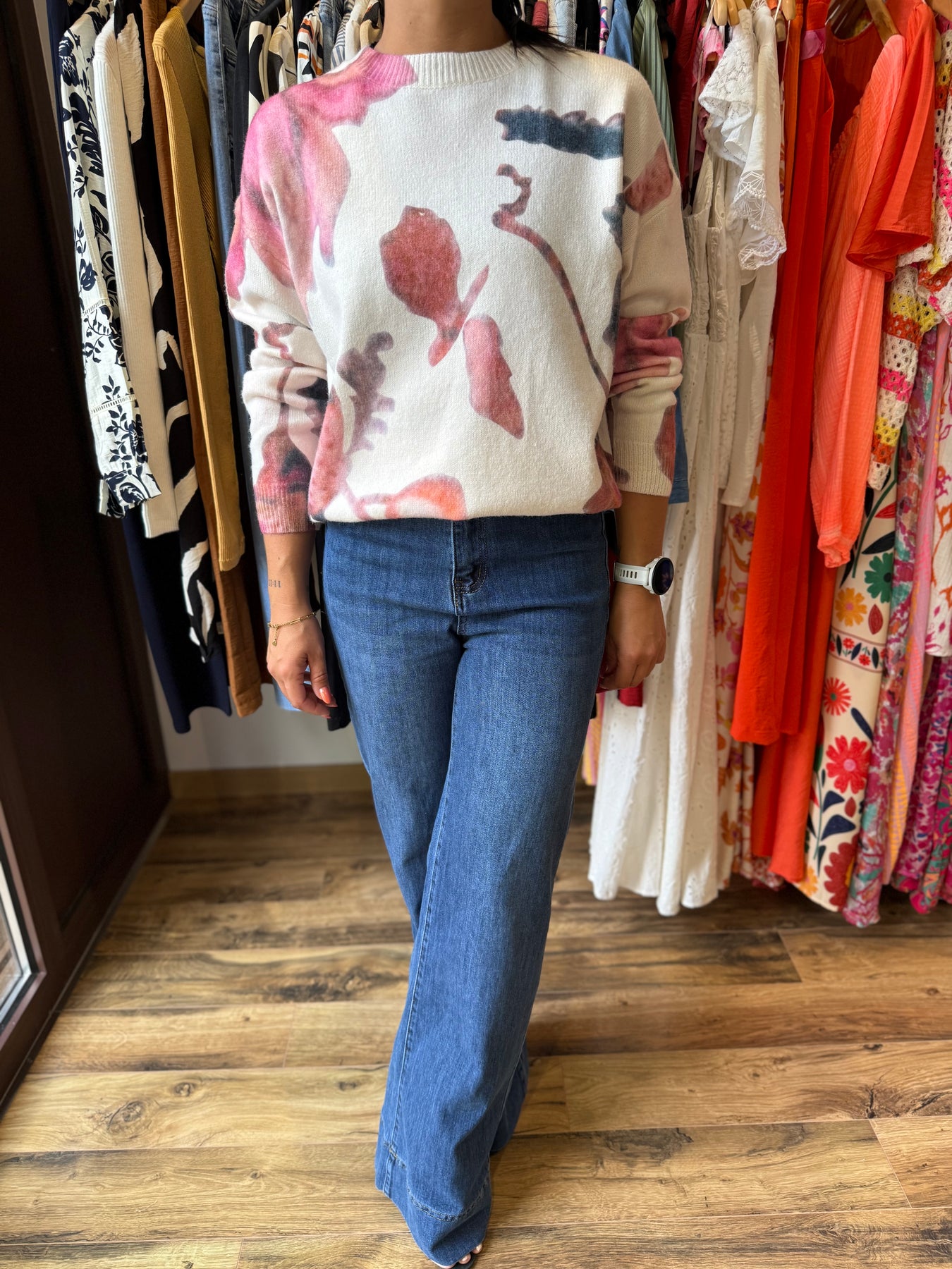 Pull “Ludo” Curvy – Imprimé aquarelle rose & rouge