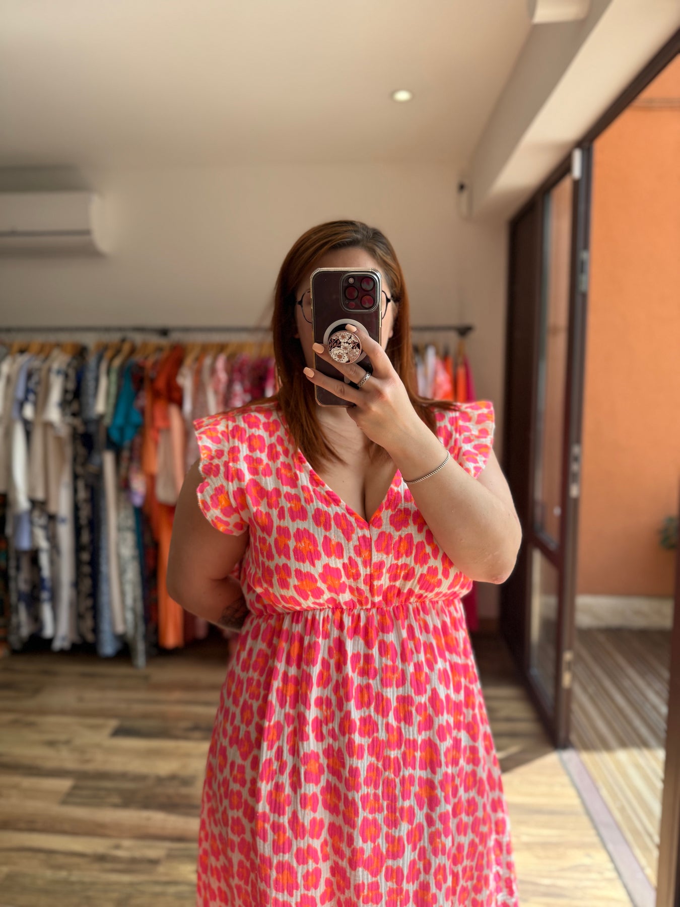 Une robe vibrante et pleine de fraîcheur, parfaite pour illuminer vos journées d’été. On aime son motif audacieux et sa coupe flatteuse qui souligne joliment la taille. À porter avec des sandales ou des espadrilles pour une allure bohème et assumée.