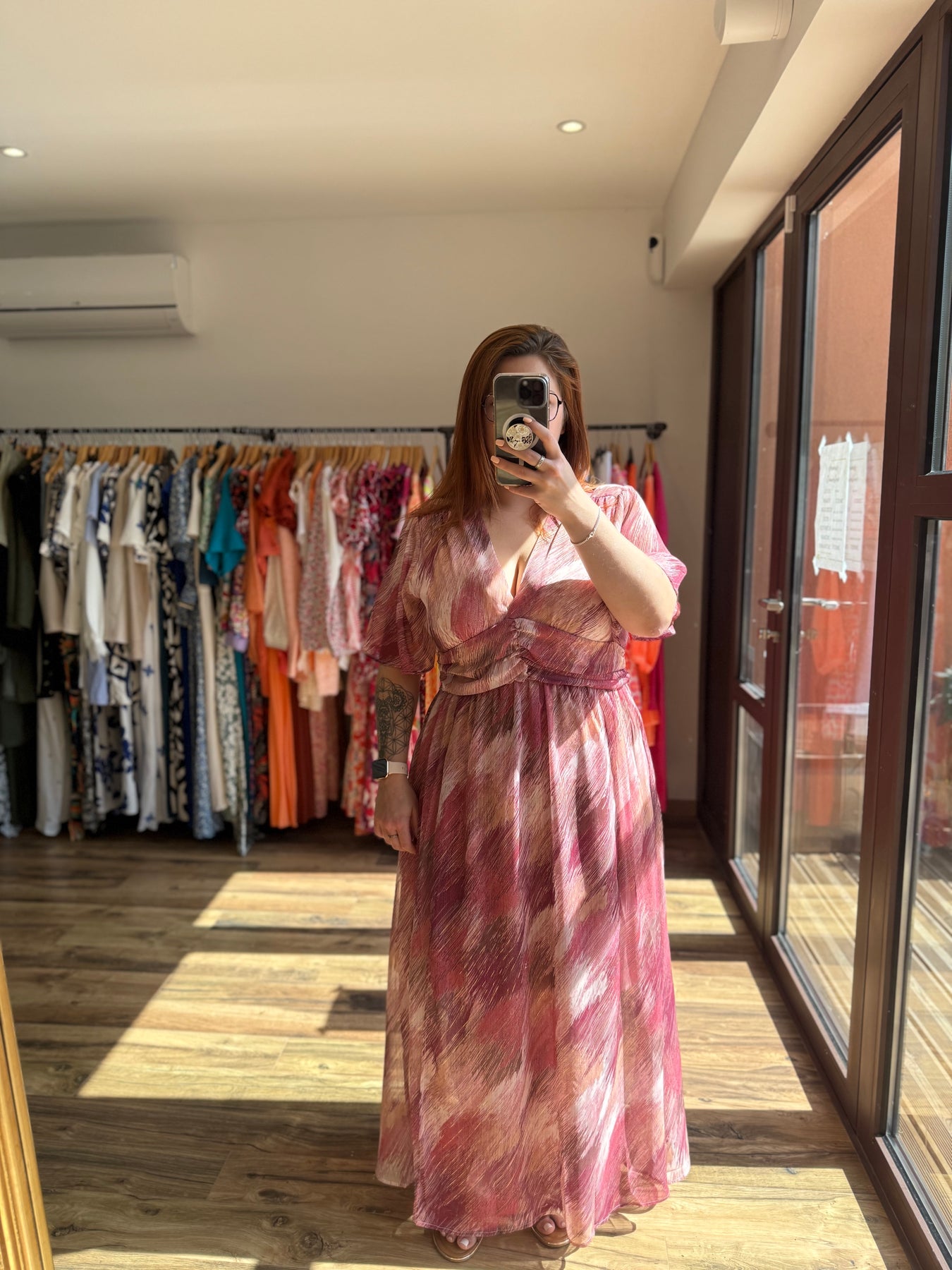 Robe longue Silas curvy – Effet satiné & dégradé rose élégant (tailles 40 au 48)